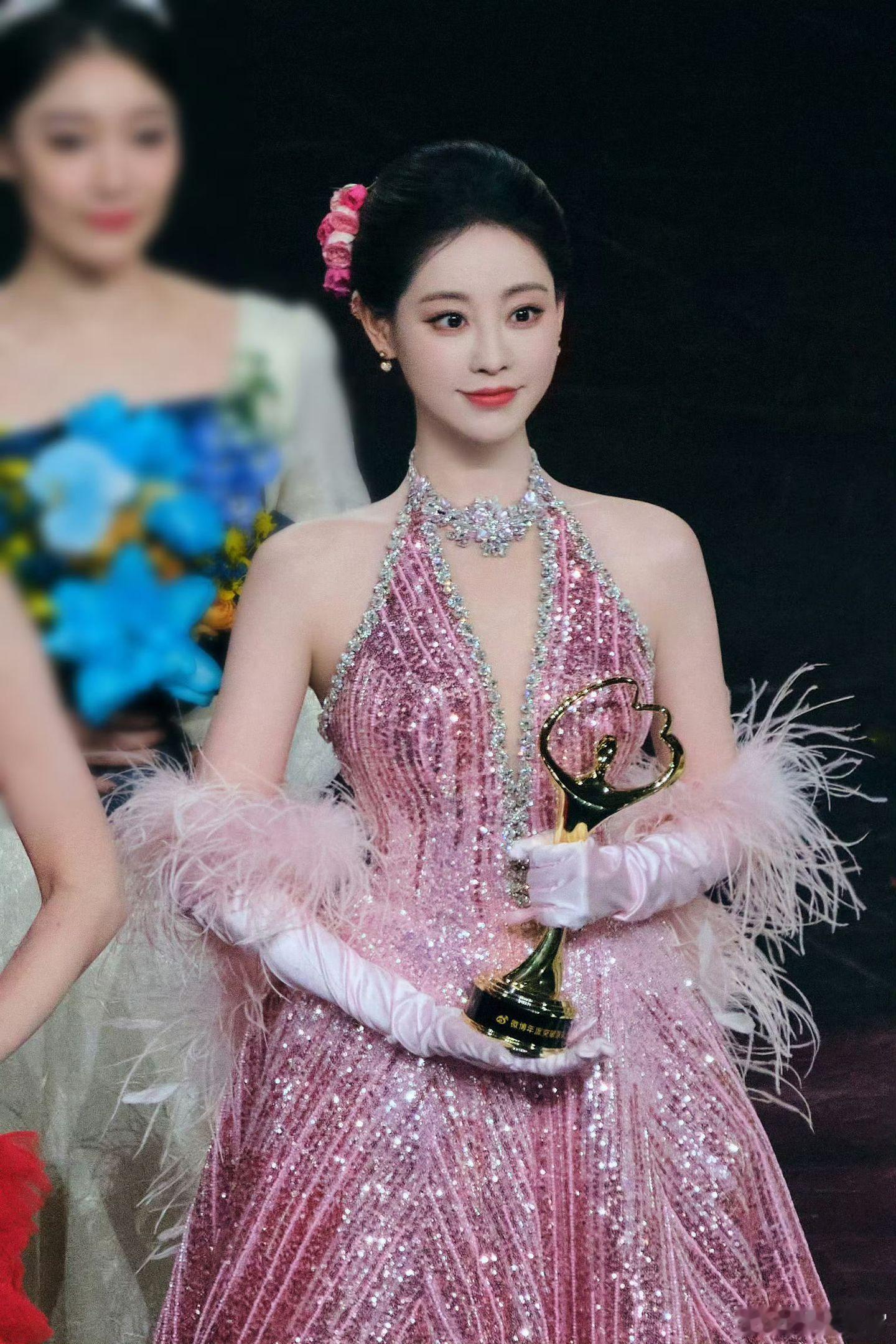 这个上台领奖的紫紫实在是太漂亮了帮雷佳音拿奖杯了,恭喜“微博年度口碑演员”杨紫微