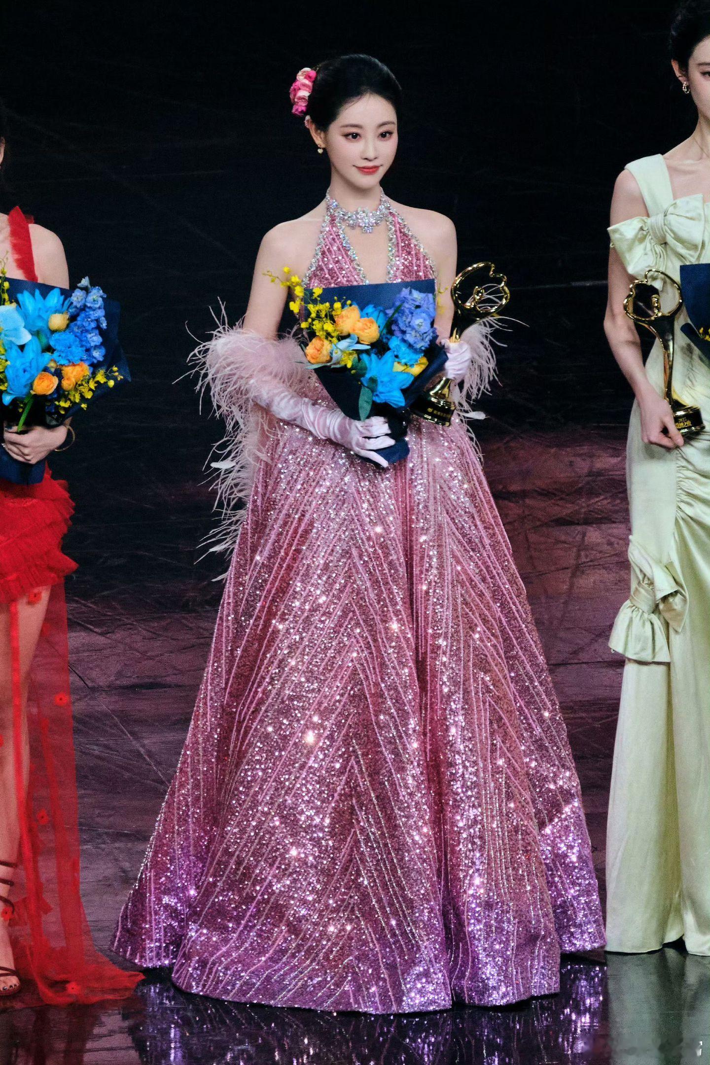 祝绪丹头上插了13朵鲜花恭喜祝绪丹拿到年度突破演员奖,但是为什么没有第二套礼服,别的演员都有。我一直在哭祝绪丹