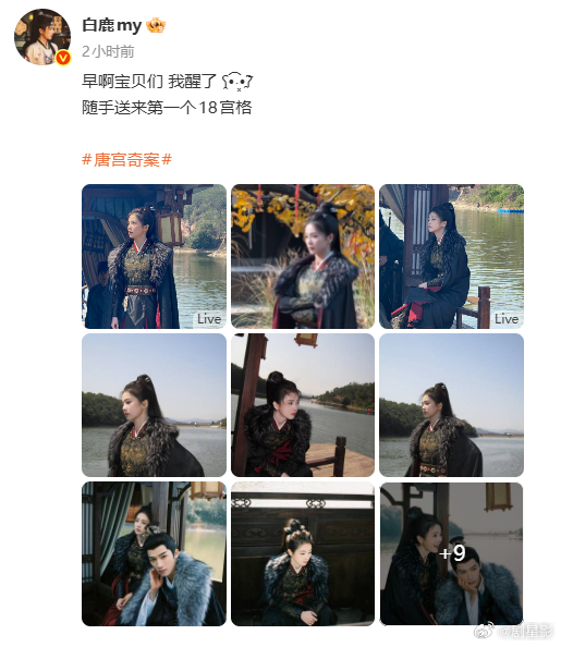 白鹿王星越早起互动 白鹿王星越早起互动真的是太有爱了呀,大家今天也要记得来追剧《唐宫奇案》 顺便看了白鹿的早起十八宫格白鹿王星越互动