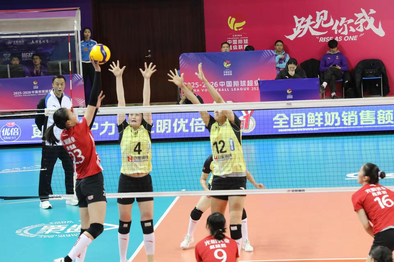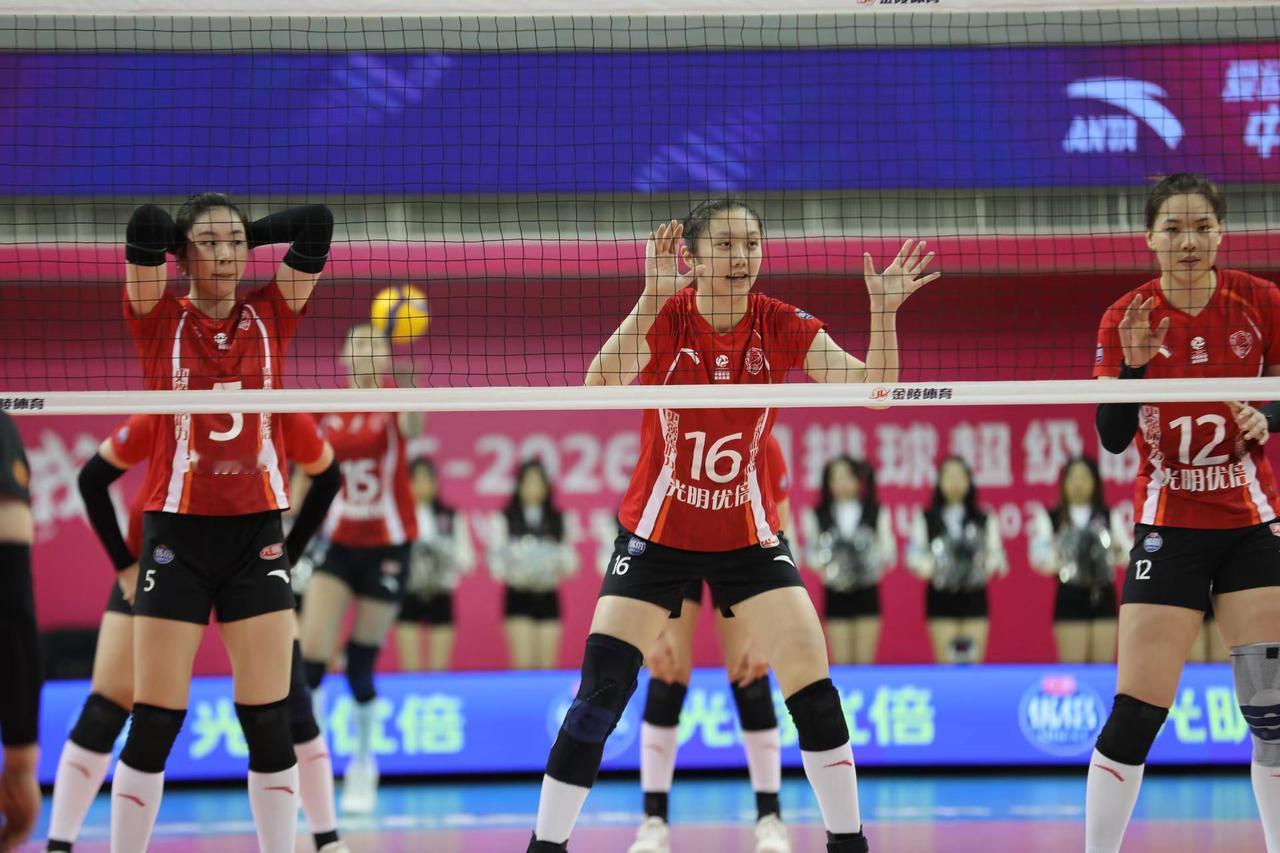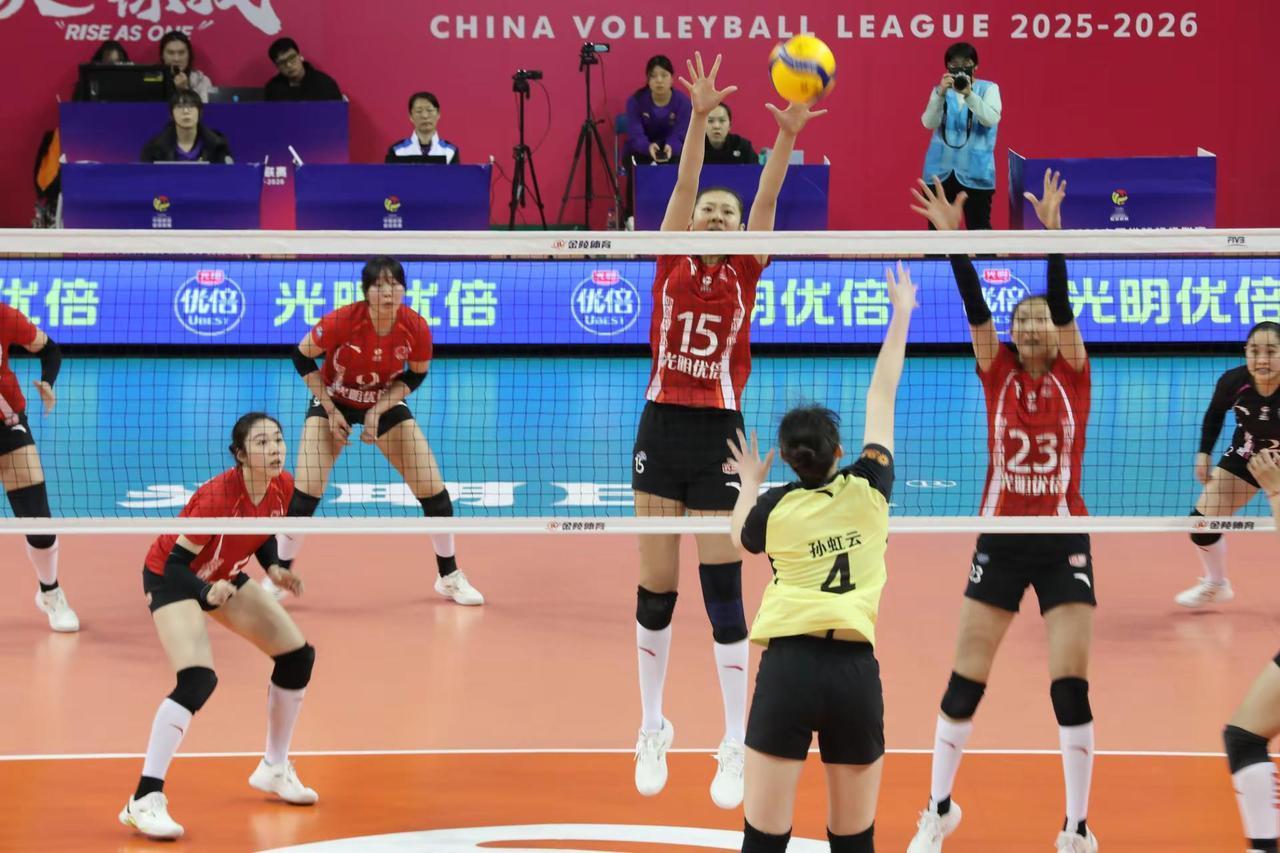 【2025~2026中国女排超级联赛】【第14轮】【第一阶段】【常规赛A组】【第55场】【上海光明优倍女排VS山东日照钢铁女排】现场比赛照。上海光明优倍女排3比1山东日照钢铁女排。比赛日期:2026年02月03日,比赛地点:上海市黄浦区卢湾体育中心体育馆。