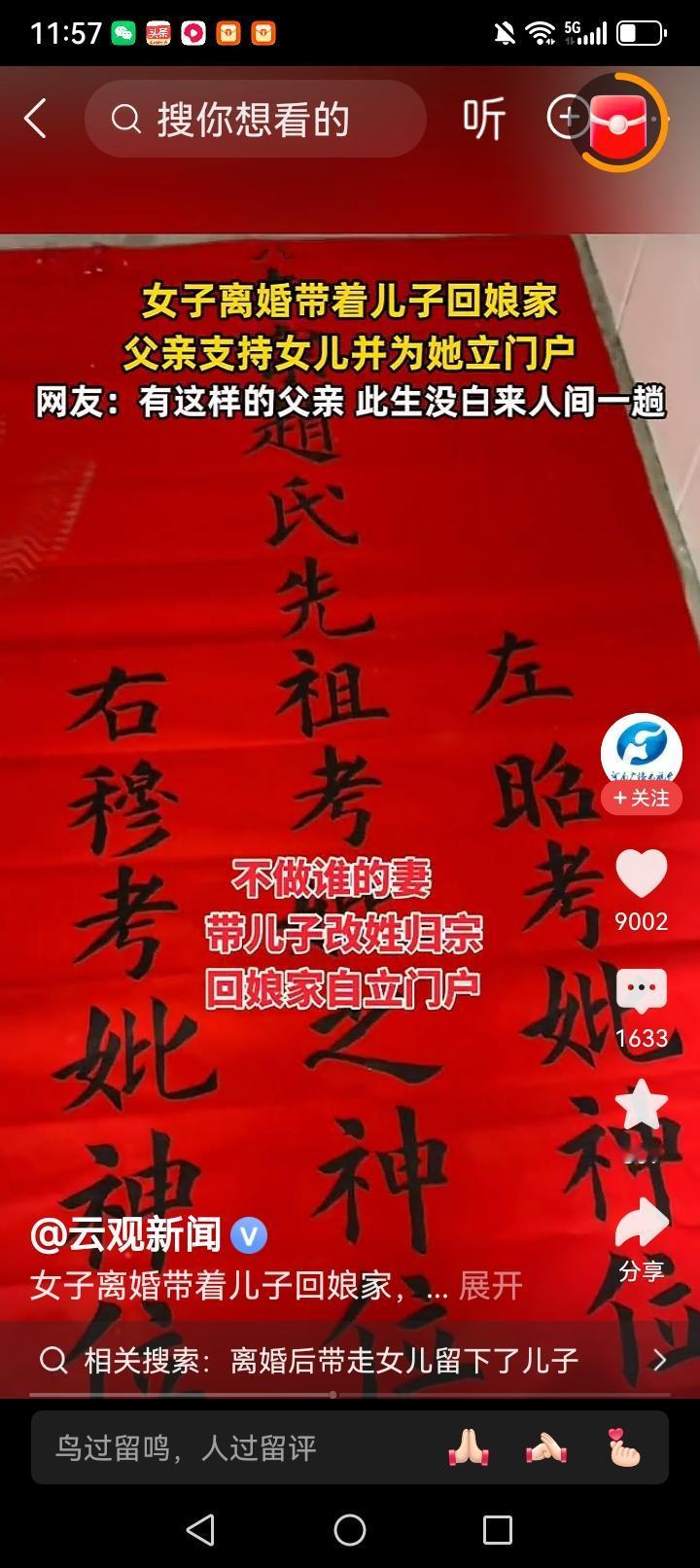女儿离异后带娃回娘家 父亲鸣鞭炮令自立门户 2月5日来自湖南的消息让网友们议论纷纷,支持者众多,反对者也有。 女子离异后带着儿子回了娘家。视频中娘家门口鸣放鞭炮,如同过年和办喜事一样。 接着,父亲亲热的搂过女儿。女儿搀扶起父亲走进家里的正堂。 然后,父亲亲自组织操办将女儿和外孙写进家谱,订立门户,为外孙更改姓氏。 最后外公抱起满脸笑容的外孙,祖孙二人的欢喜溢于言表。 这视频表达的意思是,自家女儿不能做别人的妻,就回来做自己家的大女主,娘家张开怀抱,热烈欢迎女儿归家。 开明的父亲让绝大多数网友点赞。但也有部分网友对此持不同意见,认为父亲过于支持和溺爱女儿,也是导致其婚姻破裂的一个原因。 朋友们,您支持哪种看法呢?