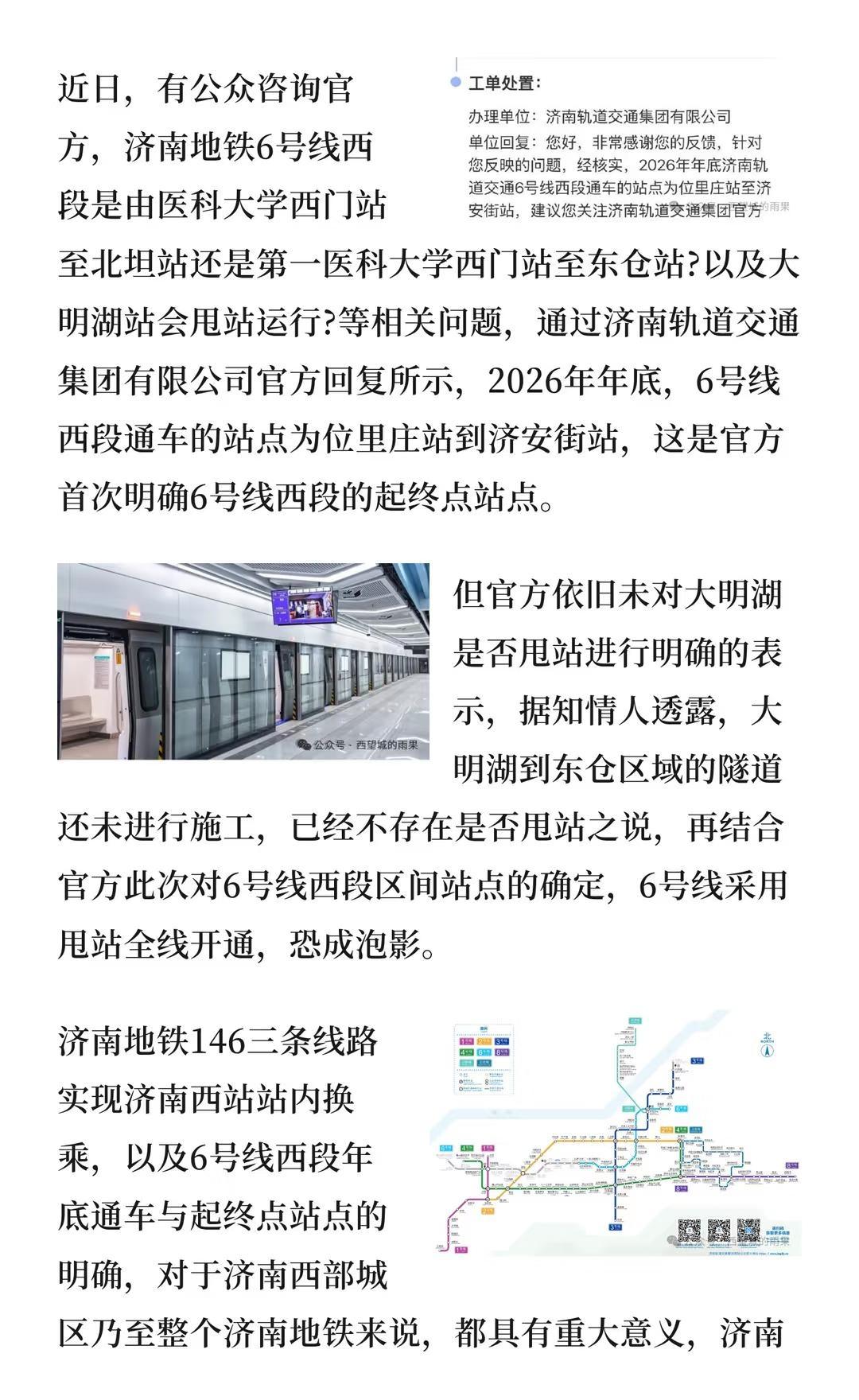 官方消息,济南地铁6号线西段起终点站公布 济南 济南商业 济南商业播报 济南西部
