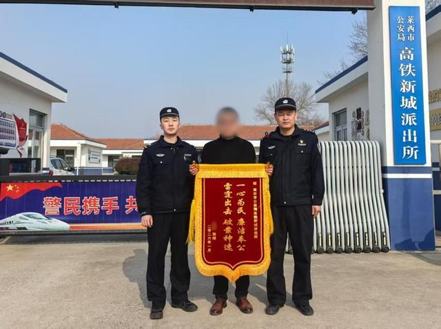 为了表达对派出所破获案件并挽回损失的感谢,2月2日,受害群众专程将一面书有“一心为民廉洁奉公雷霆出击破案神速”的锦旗送到派出所。