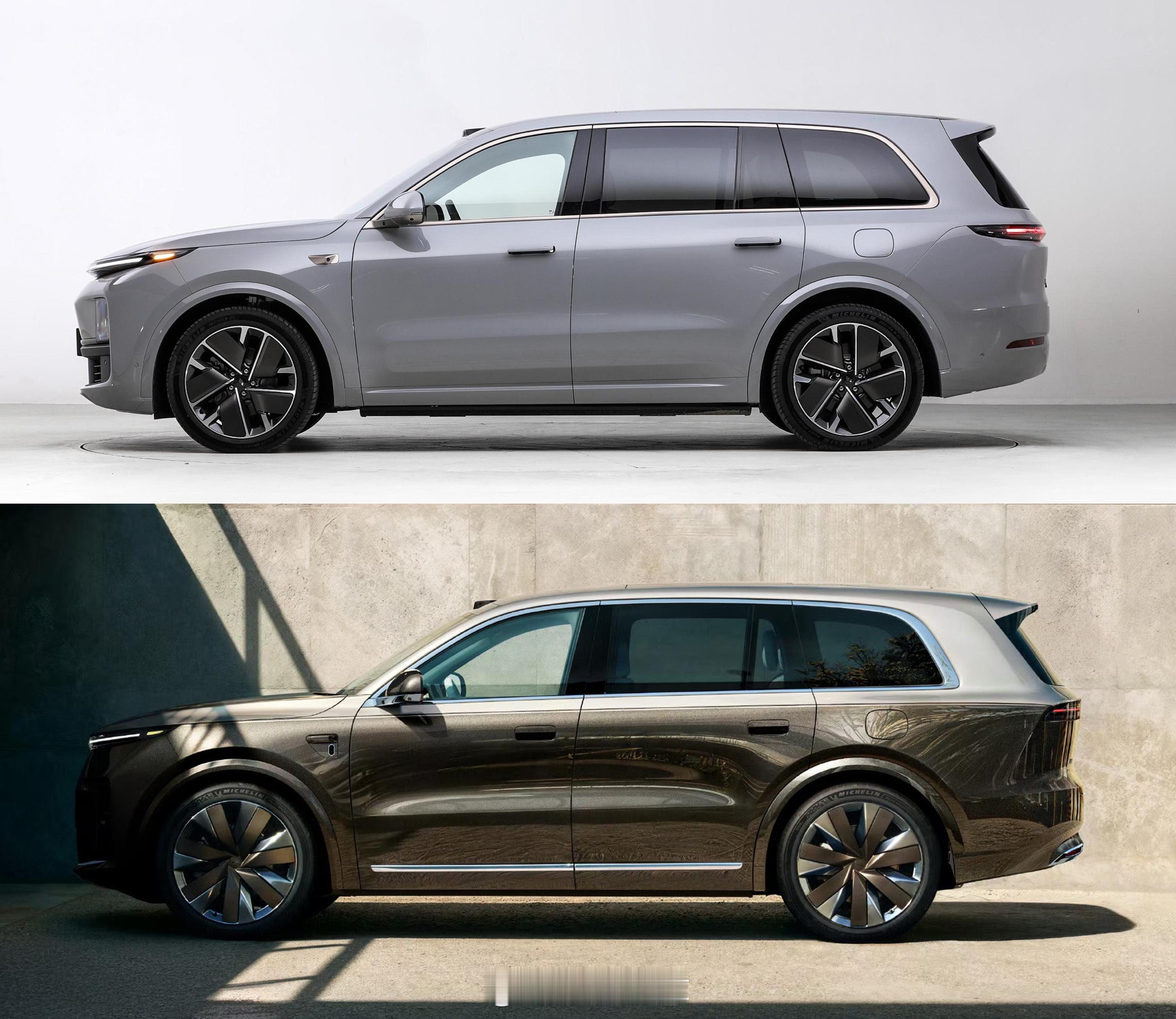 不过相比现款,全新的的 L9 在外观上还是有很多细节变化的,首先是前脸下面的进气隔栅面积变小了,现在跟 i8 比较像。以往理想对于镀铬比较控制,无论是 L 系列还是 i 系列,车身很难见到镀铬。但这次全新 L9 上理想也放开了,车身周围一圈都加上了镀铬条,加上双色车身,这也让全新 L9 成为了理想目前外观档次感最高的,在这方面,算是迎合了这个价位消费者的喜好。毕竟市场已经证明了,这个价位的消费者还是很喜欢这些的。