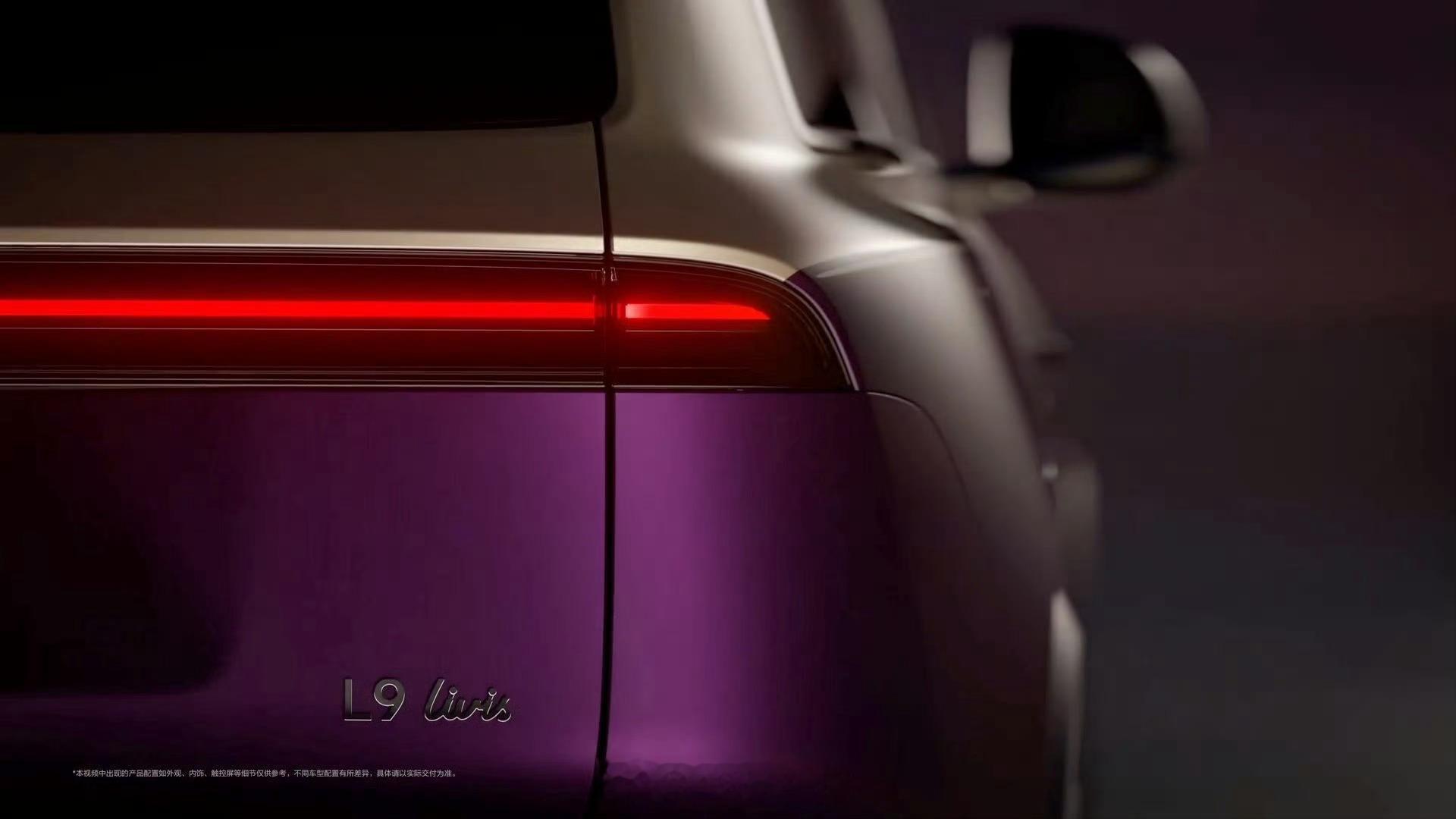 车尾是这次全新 L9 在外观上变化最大的部分,尾灯面积更大了,但看产品图内部主体依然是一条细的灯带,不知道其它的部分是不是有别的功能,毕竟这次全新 L9 增加了车外交互。