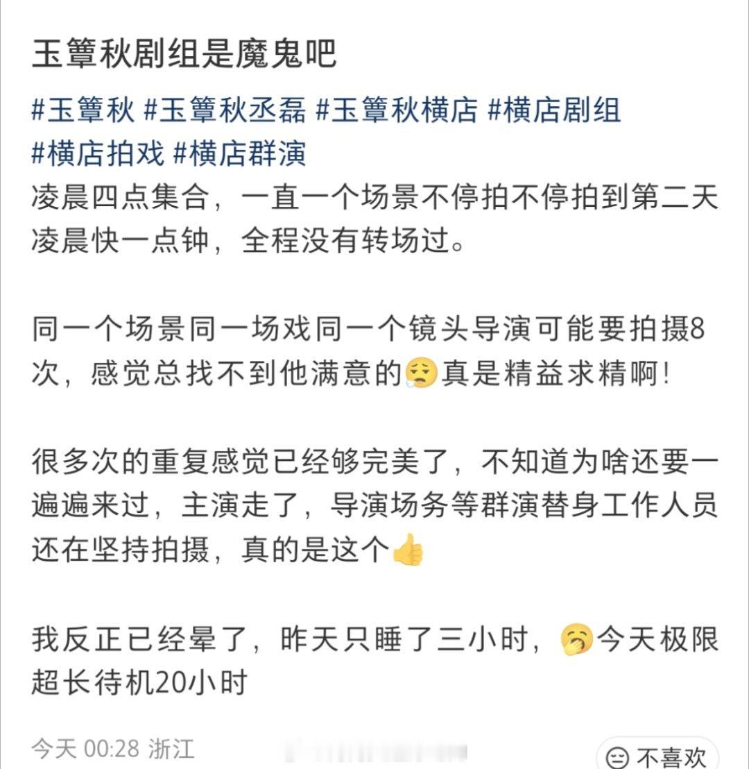 丞磊徐若晗的玉簟秋剧组从导演到演员都很认真,每个镜头都要要拍好多次不同的版本,力