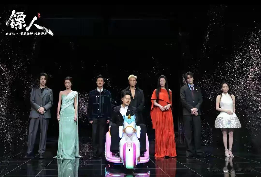 微博之夜红毯,《镖人》剧组一出现,那阵仗,绝了!导演袁和平带着吴京、谢霆锋、陈丽君等一大帮人,四代能打的站一块,这江湖气直接拉满。 最逗的是孙艺洲,人家都骑马走路,他坐着个发光的彩虹小马车就来了,全场笑翻。原来他在电影里演的就是个不爱骑马、非要坐车的“知世郎”,剧组连红毯都给他把“人设”焊死了,吴京说这是特意安排的。网友都说:行,这镖护得够到位! 这电影能拿下“微博最受期待春节档电影”,真不是瞎吹。看看这帮演员,个个都是“练家子”,武术冠军、戏曲名角、舞蹈高手全来了。为了拍戏,提前特训,在新疆大漠60度高温里真打真摔。谢霆锋说“我是看武侠电影长大的”,现在这群人,是要让我们再看一部新的武侠电影长大吗? 大年初一上映,看这架势,是打算让我们在电影院热血沸腾地过个年。这把“镖”,我期待了! 电影《镖人》剧组亮相微博之夜 《镖人》 吴京