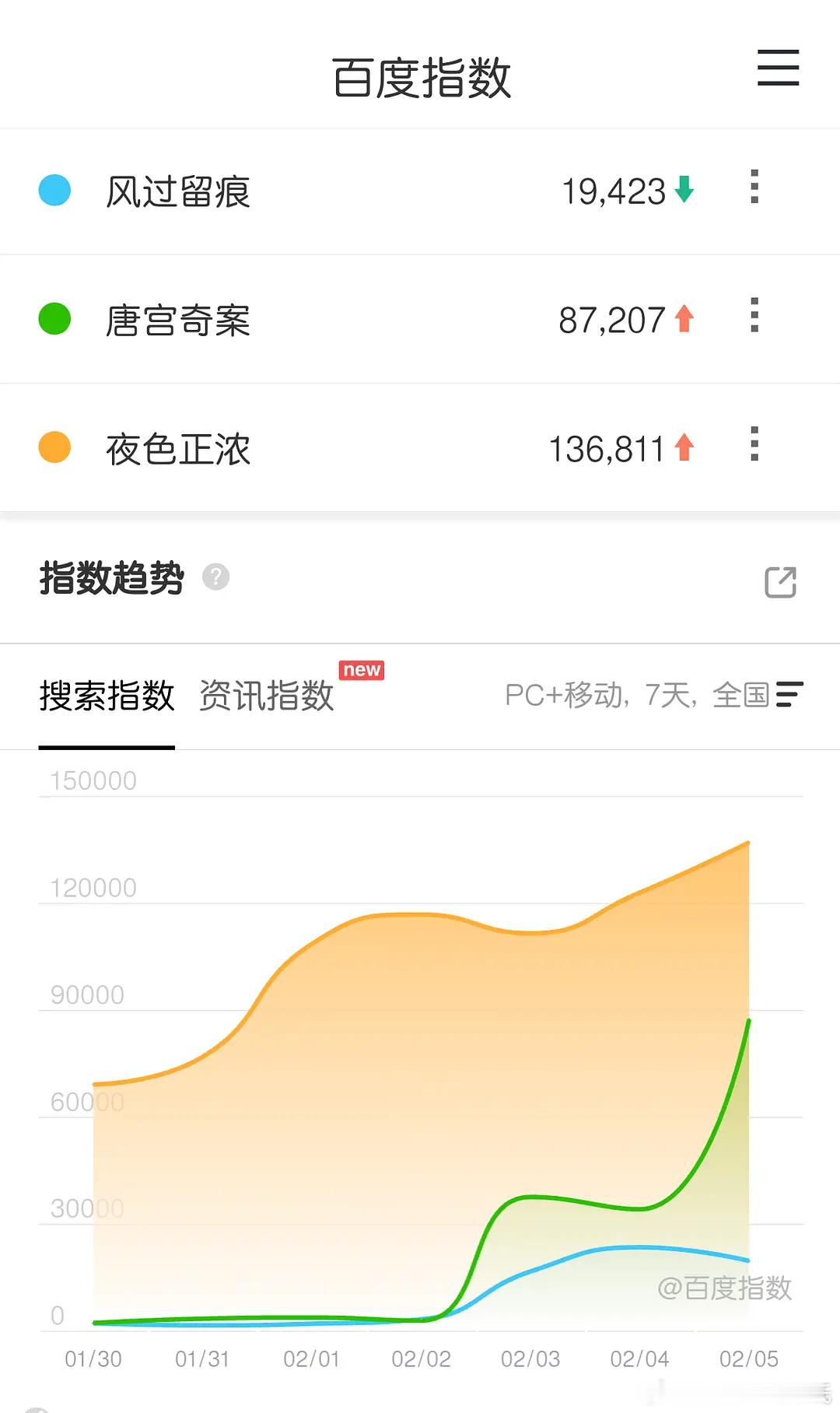 唐宫奇案百指8.7w但十城异常(南通、晋中)白鹿百指2.3w,十城正常王星越百指3686 十城正常抖指2.5未出,2.4日(开播前一天)106.8w