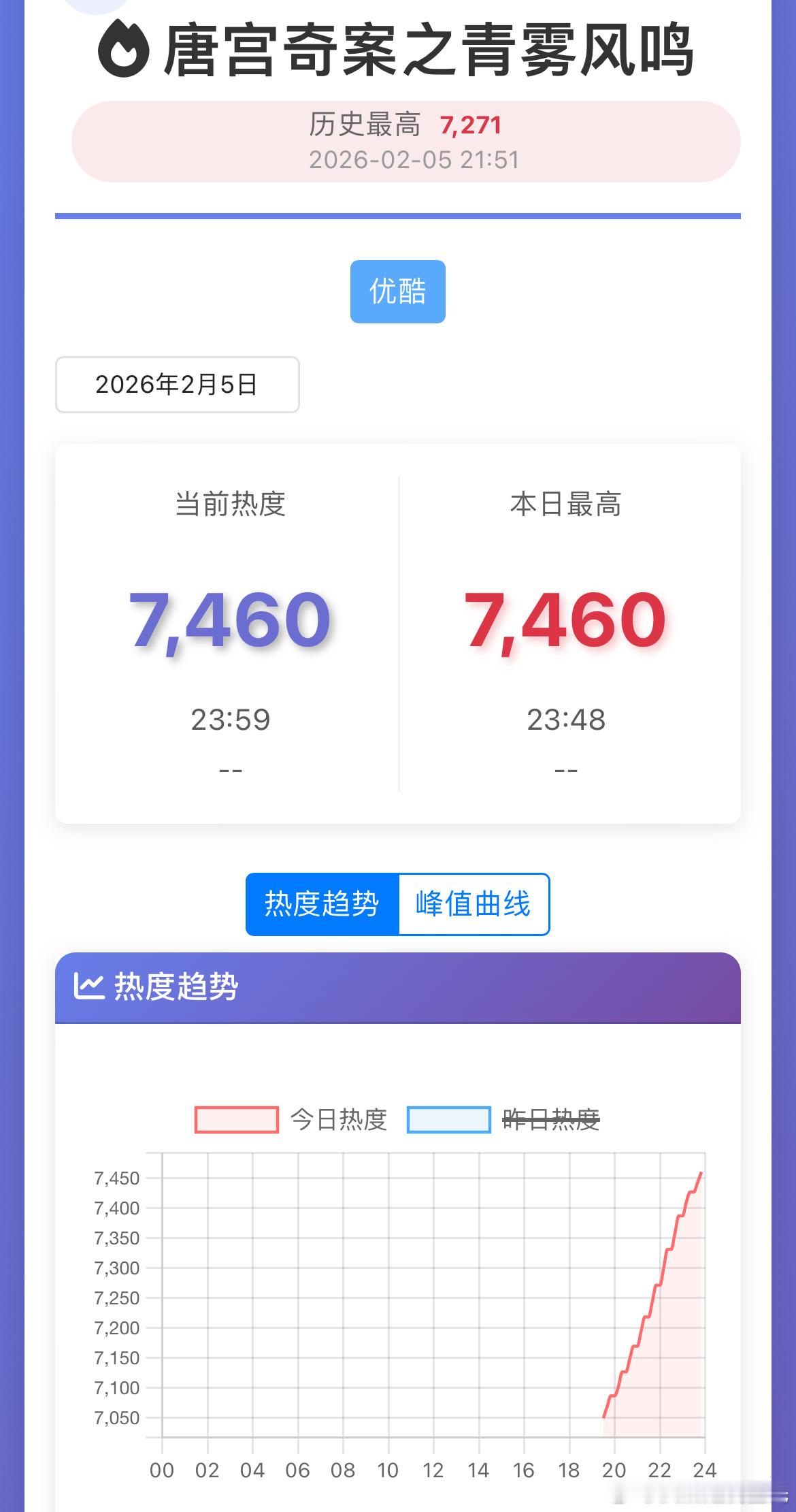 白鹿、王星越唐宫奇案 首日数据优酷热度7460,开播时热度就垫到7000+了所以热度拉升并值不算高,灯塔播放量879w,预计云合/酷云播放量600w上下