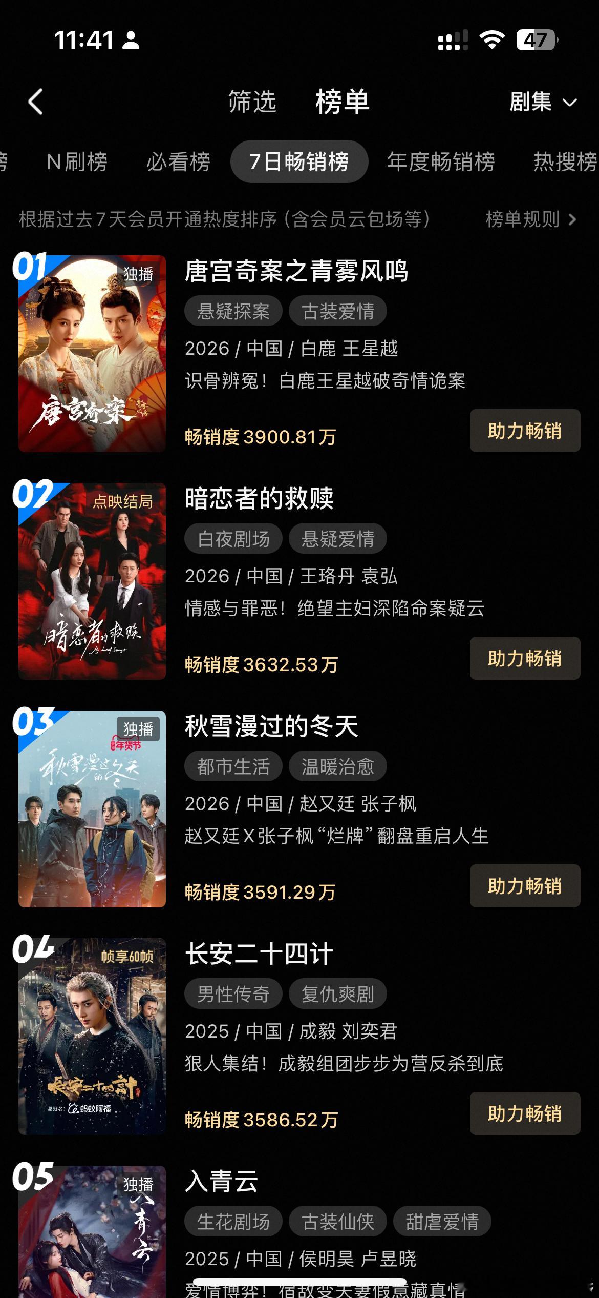 唐宫奇案首日登顶优酷7日畅销榜(拉新周榜),畅销度3900.81万