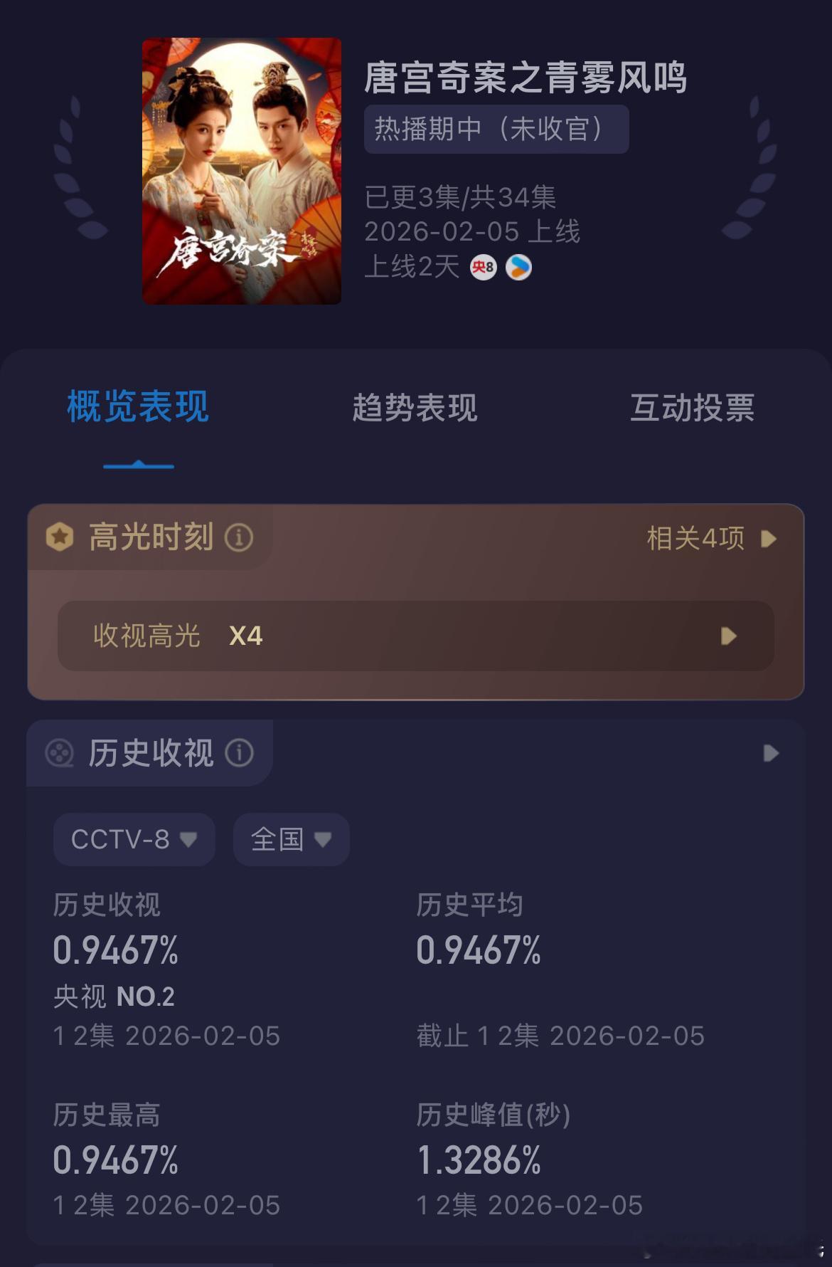唐宫奇案招商爆好,(仅视频广)单集最高13广138s,首播4集直接破500s单集13广为优酷单集最高记录