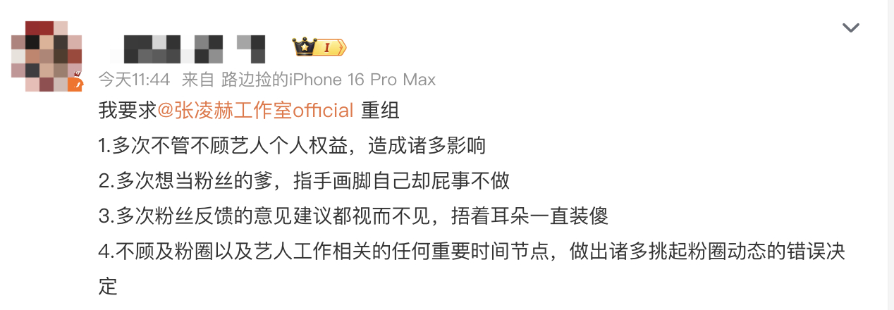 张凌赫粉丝咋了,在集体维权要求张凌赫工作室重组。