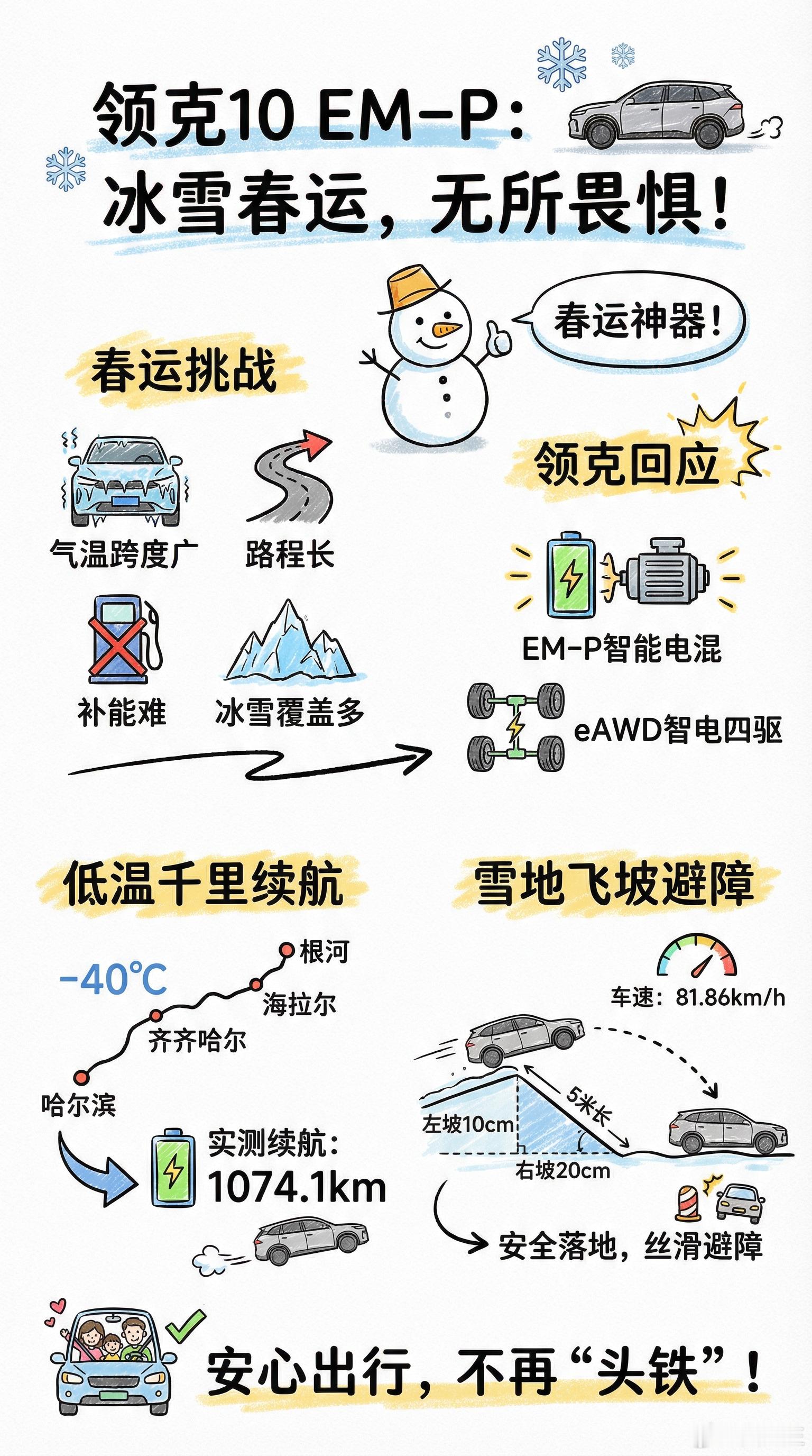 零下40度千里春运你的车行吗 这次极寒测试的意义,不止于验证领克10 EM-P单车的性能。我更看到,它标志着混动技术已开始系统性挑战纯电车型的“冬季禁区”。