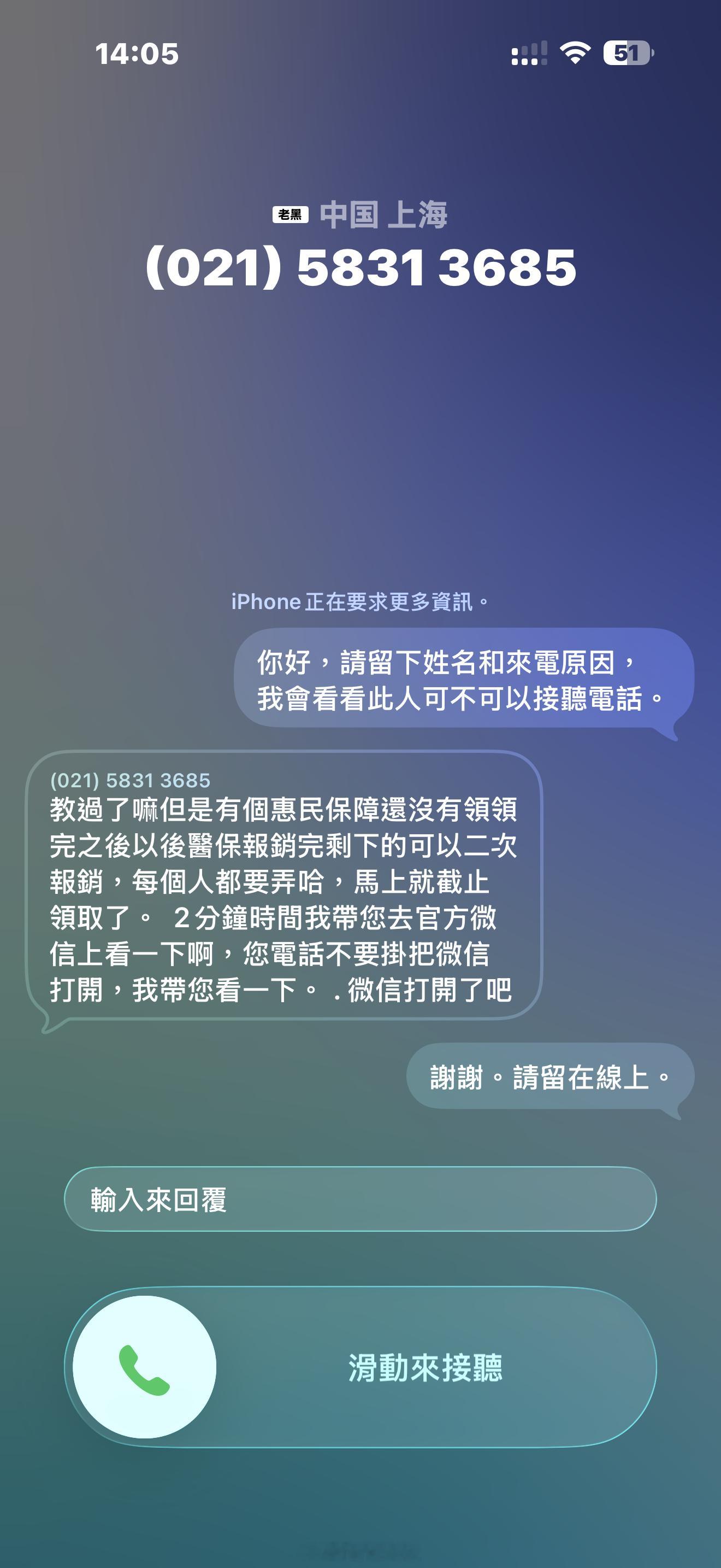 虽然iPhone没有骚扰拦截,但是他会后台先和陌生号码聊起来,然后系统再判断是否