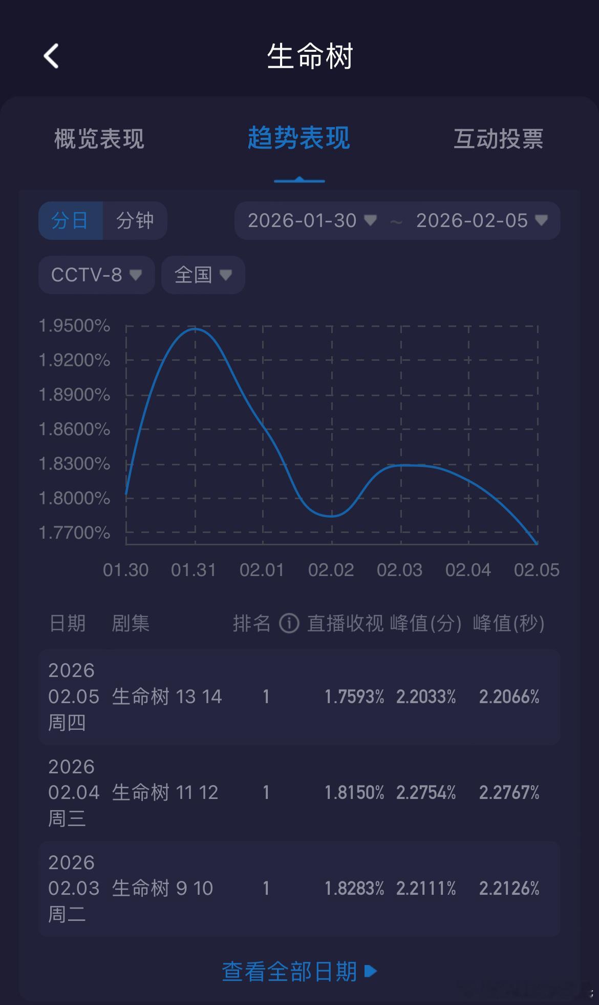 杨紫、胡歌生命树 昨晚微博之夜竟然新高了!!!生命树爱奇艺热度破8600整!较前日热度+27,云合/酷云播放量估计最多也是涨30万上下~周末又到,大家来押是不是“冲”到9000
