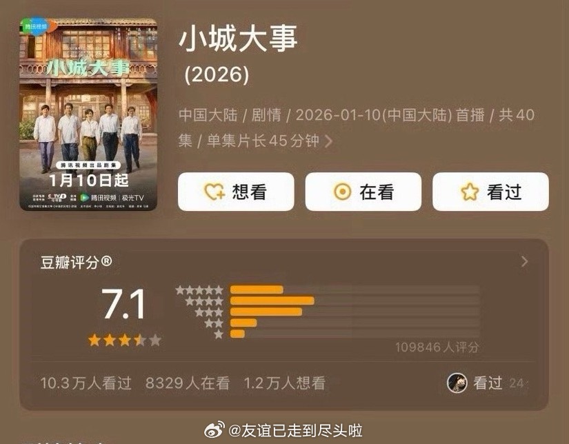 最近几部新剧豆瓣开分,高了还是低了?赵丽颖、黄晓明《小城大事》开分7.1,10.