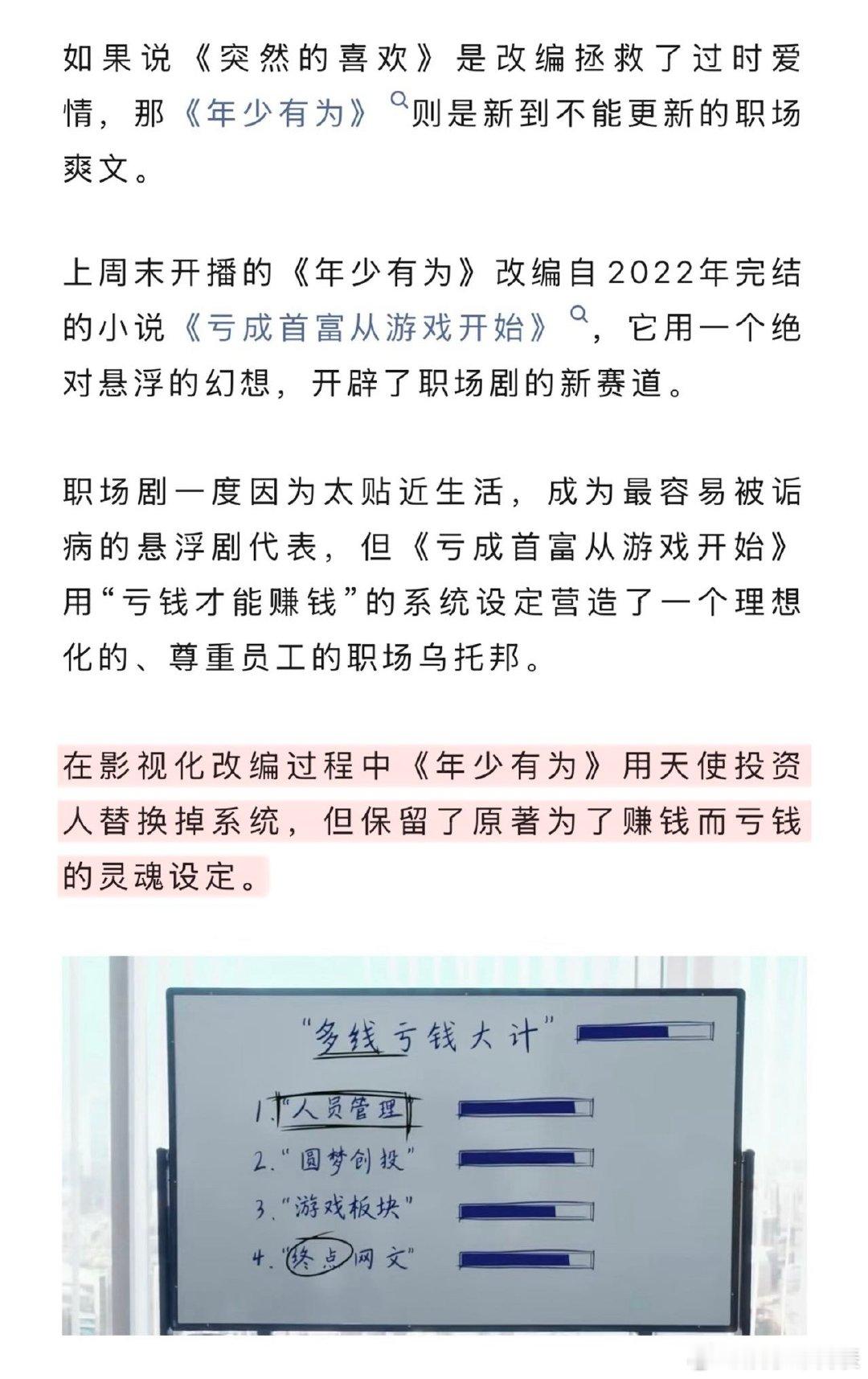 内娱长剧能靠无限流破局吗鞠婧祎陈都灵都有无限流待播剧《年少有为》太懂打工人!禁止加班、顶格工资、强制带薪健身,“亏钱才能赚钱”的设定,堪称职场爽文天花板✨娱理独家↓