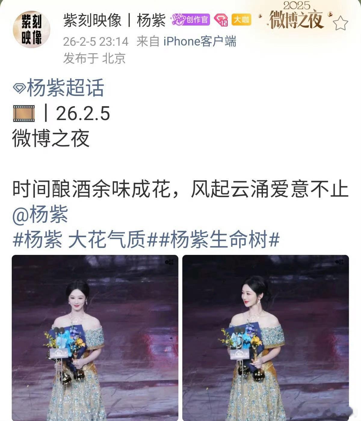 雷佳音感谢杨紫帮领奖昨晚剧宣标杆杨紫带着白菊闪耀微博之夜✨开开心心的聚会:杨紫侯