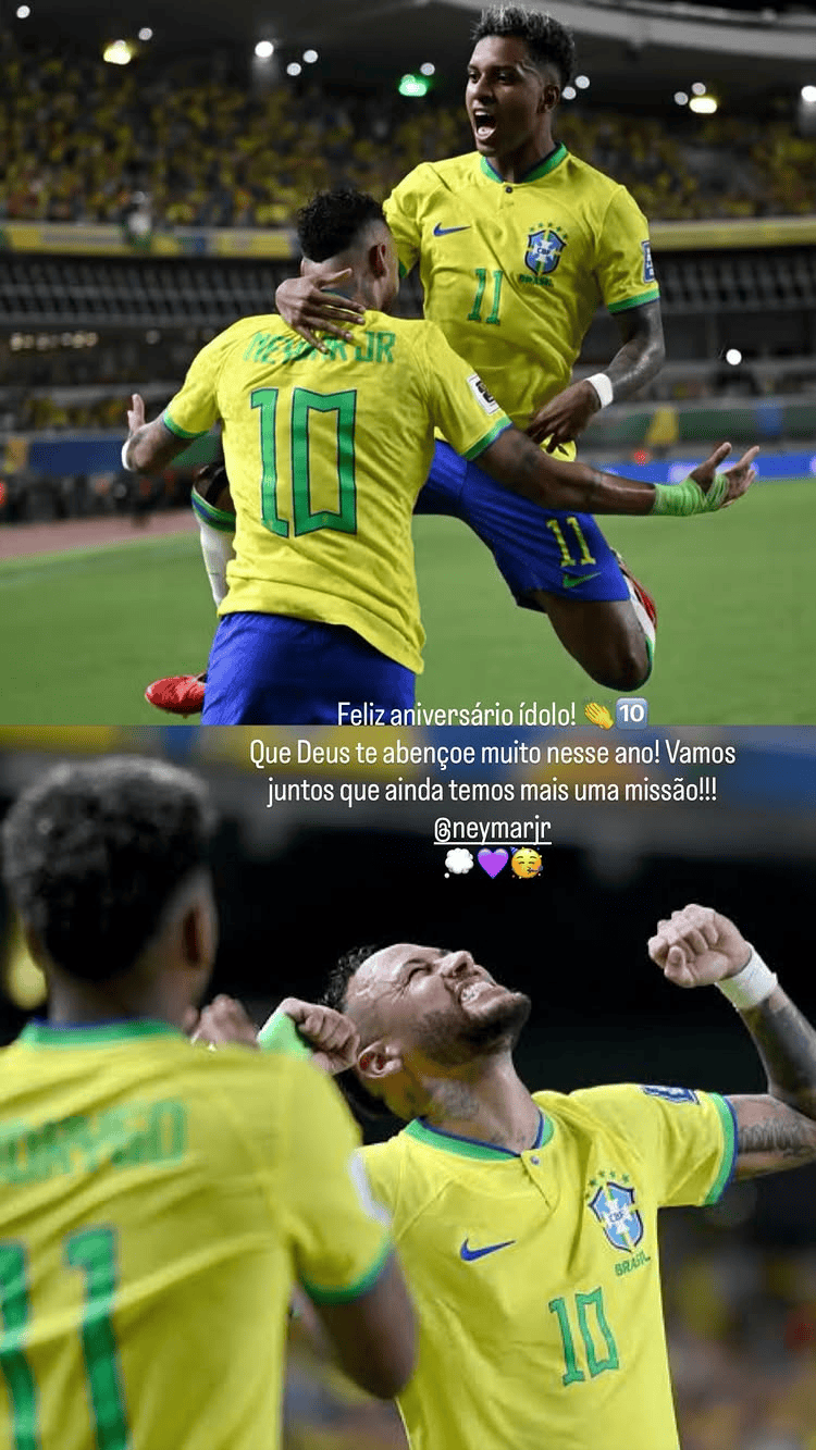 罗德里戈发布了自己与内马尔的合影:偶像,生日快乐,希望上帝在新的一年赐福于你,我们并肩前行,因为还有一个使命在等待着我们!