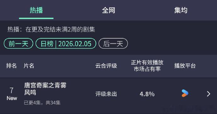 唐宫奇案4.8%唐宫奇案的云合唐宫奇案的云合,唐宫奇案4.8%,咱就说首开已经很不错了,期待住接下来的故事发展和热度走向啦~