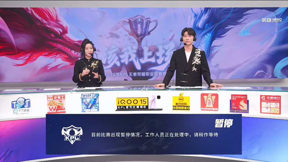 虎扑02月06日讯2026年王者荣耀春季赛,桐乡情久对阵广州TTG的第二局比赛中,出现暂停情况,请稍作等待