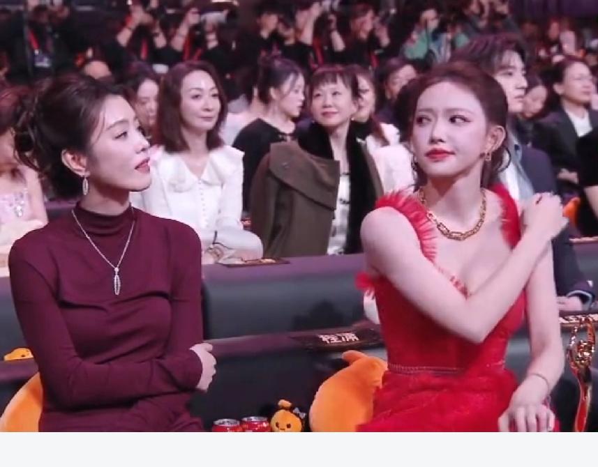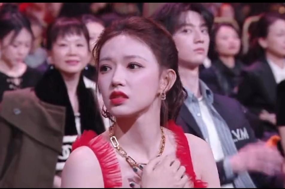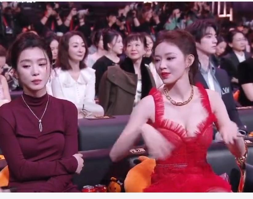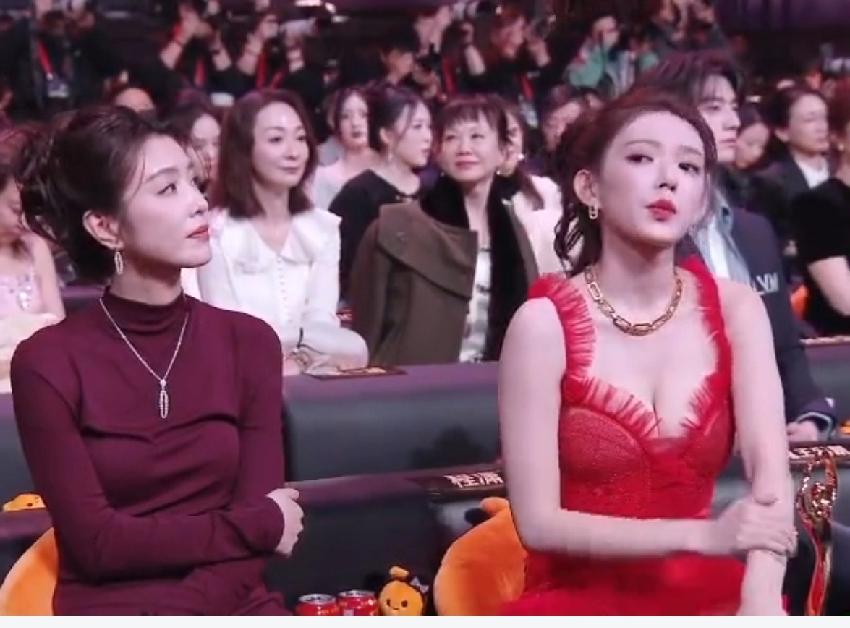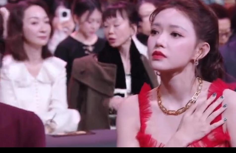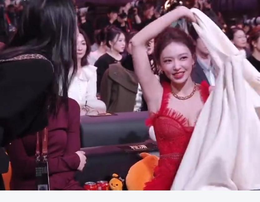 程潇穿着红色低胸礼服坐立不安,看来她骨子里也是个内敛保守的人,她坐在位子上一直很慌乱,手捂住胸口,一脸的不自在,看来这礼服也不是她喜欢的,估计是品牌方要求穿的。直到助理把披肩送过来,程潇脸上烦躁的神情才一扫而空,露出难得的笑容,她赶紧把披肩披上,终于松了一口气。其实,这红色裙子程潇穿了真的很美,衬的她肤色特别白皙,大大方方的展现自己的美多好!