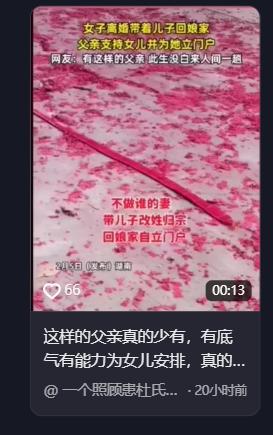 湖南,女子离婚带着年幼的孩子回娘家,本来心里很忐忑,担心遭冷眼被邻居嚼舌根,不料父亲什么也没说直接放鞭炮庆贺,帮她立门户撑腰。 湖南某处的乡村上空,空气突然被震耳欲聋的鞭炮声撕裂。这不是哪家公子娶亲,也不是谁家老人做寿。这点燃的一地红纸,是一位父亲为刚离婚回家的女儿铺的一条“红毯”。 就在几天前,这辆载着年轻母亲和幼童的汽车驶入村口时,车里的气氛恐怕比那天的气温还要低。 我们可以想象那个画面:刚刚结束一段破碎婚姻的女子,紧紧搂着孩子,心脏撞击胸腔的频率可能比发动机还要快。 在她的预设剧本里,等待她的将是一场名为“唾沫星子”的风暴。邻居会在背后指指点点,亲戚会投来意味深长的眼神,而那句像诅咒一样的俗语——“嫁出去的女儿泼出去的水”,恐怕早就悬在了家门口。 她甚至做好了被拒之门外的心理准备,毕竟在传统的乡土逻辑里,离异带娃回娘家,往往意味着给家族“抹黑”,是累赘,是失败者。但这扇门打开后,剧情没有按剧本走。没有劈头盖脸的责骂,没有权衡利弊的盘问,甚至没有一声长吁短叹。 老两口做的第一件事,是端上了热气腾腾的饭菜。第二件事,是从女儿怀里接过外孙,笑着哄了起来。这种沉默的接纳,瞬间击碎了那些关于“面子”的焦虑。那一碗热饭的温度,直接烫平了女儿回乡路上的所有忐忑。 但这还不是高潮。如果说母亲的饭菜是温柔的止痛药,那父亲接下来的操作,简直就是精准的外科手术,直接切除了“寄人篱下”的病灶。这位湖南父亲显然是个狠角色。他没有停留在口头上的安慰,而是转身就开始了一场极为硬核的“防御工程”。 他不仅收拾出了独立的居所,添置了全新的生活物资,更是一脚踏进了派出所的大门。这两张薄薄的纸,在法理上直接宣告了女儿和外孙的独立主权。更令人咋舌的是,他直接给外孙改了姓。 在宗族观念深厚的农村,这一步棋走得石破天惊。改姓,意味着彻底切断了前夫家族对孩子的某种“所有权”宣示,也意味着这个孩子从此名正言顺地归入娘家的谱系。做完这一切,父亲觉得还不够。他要在舆论场上再打一仗。 于是就有了开头那一幕。鞭炮齐鸣,宴请亲朋。父亲当着所有亲戚的面,把话撂在了酒桌上:“闺女和外孙有家了,谁也别想欺负她们。” 这哪里是简单的接风洗尘,这分明是一份语气强硬的“外交声明”。他用最传统的仪式感——鞭炮和酒席,去庆祝一件传统观念里最忌讳的事离婚。这种巨大的反差,让这个发生在湖南的故事迅速冲破了地域限制,在网络上引发了百万级的共鸣。 当然,舆论场里总会有杂音。在那几百万个点赞的夹缝中,依然有人在嘀咕“劝和不劝分”,甚至担心这样会把女儿“惯坏”。但这种声音很快就被羡慕的浪潮淹没了。绝大多数人之所以“破防”,不是因为这个女子有多惨,而是觉得她太“爽”了。 这种爽感,来源于一种稀缺的安全感。我们在都市里见过太多虽然离了婚,却因为没有退路而不得不继续在泥潭里挣扎的女性。娘家回不去,夫家待不住,这种“无根”的恐惧,是许多人在糟糕婚姻里隐忍不发的根本原因。 而这位父亲,亲手为女儿打造了一个“军火库”。他用实际行动重新定义了“立门户”:它不是为了让女儿依附于父母啃老,而是给她一个随时可以起飞,也随时可以降落的私人机场。 所谓的底气,从来不是银行卡里的数字,而是你知道,当你满身伤痕地转过身时,身后不是万丈深渊,而是有人笑着为你放了一串庆祝新生的鞭炮。 这大概就是“家”在这个时代最动人的注脚。