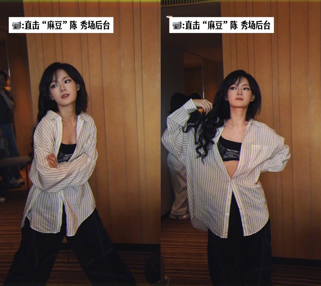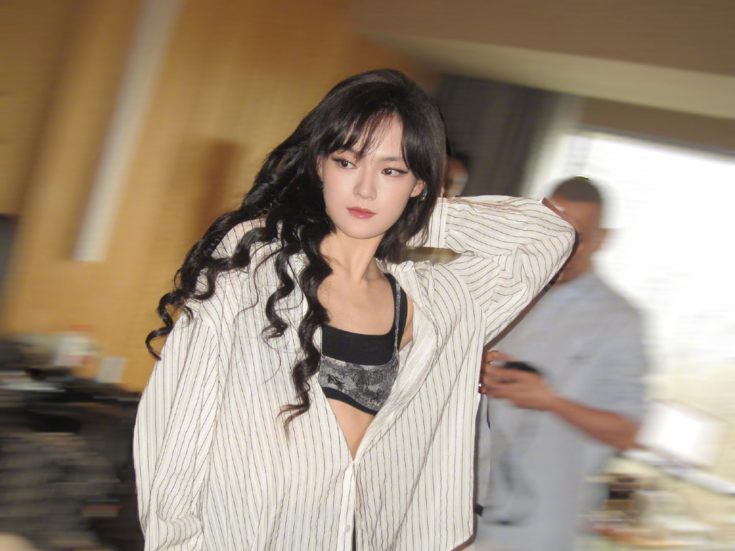 文淇的性感是自由生长的 微博之夜vlog妆造太有巧思!黑色打底叠宽松条纹衫,休闲
