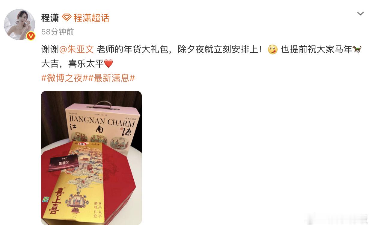 程潇晒朱亚文送的年货大礼包朱亚文送程潇年货大礼包 意想不到的“联动”+1!程潇晒