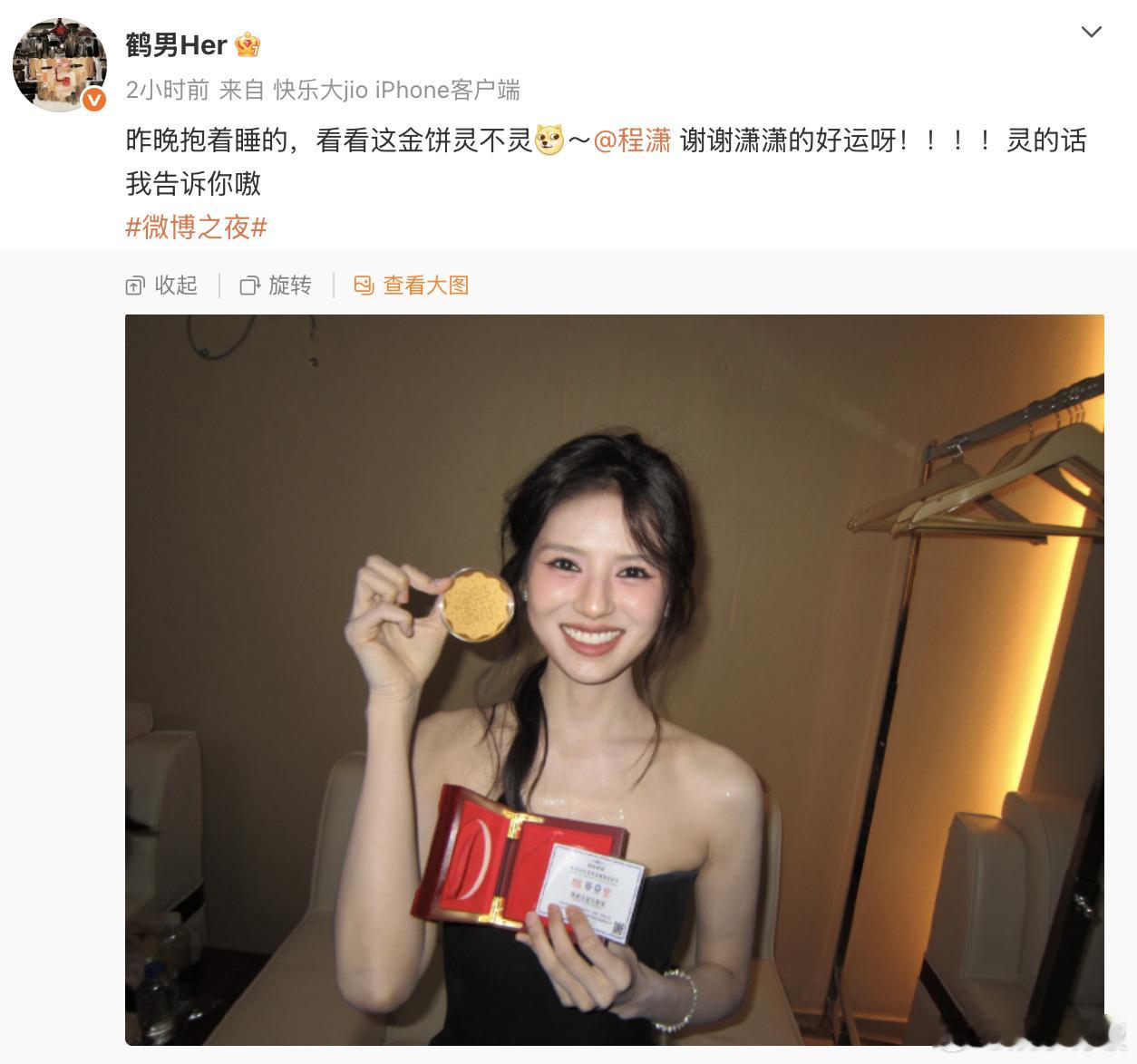 程潇鹤男交换礼物互动鹤男抱着程潇送的礼物睡觉 程潇鹤男微博之夜的礼物互换也太甜了吧!程潇送的黄金金饼鹤男直接宠到抱着睡觉,两个小女孩都要好运连连