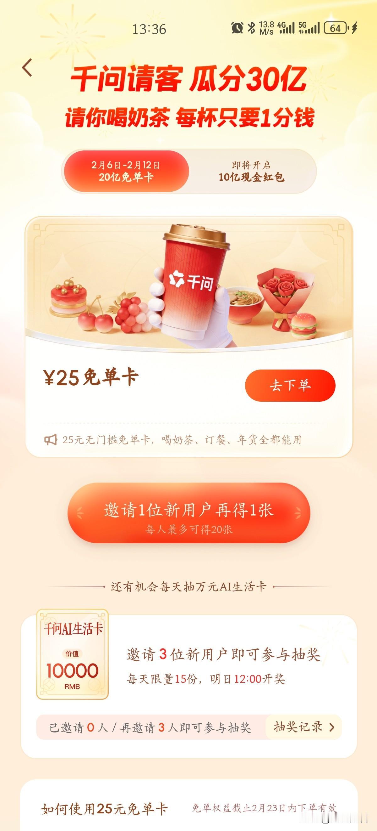 阿里为了流量可真是下足了功夫。旗下的AI千问推出了25元奶茶免单政策。 从今天起,在所有应用商店里,千问一跃成为应用下载量榜首,把其他APP都远远甩在了后面。 这次的补贴力度相当大,据说补贴单数会超过500万单。 相信未来几天,千问的下载和使用量会呈指数级增长。 毕竟,谁能拒绝免费的东西呢? 小伙伴们,别再犹豫了,赶快去下载千问,免费奶茶在等你! 千问ai
