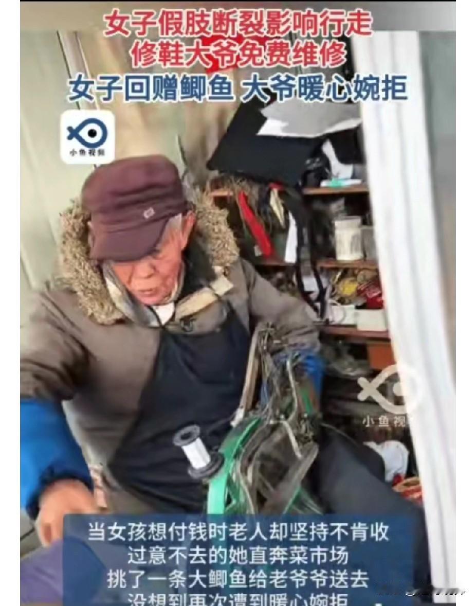泪目!女子假肢断裂寸步难行,修鞋大爷免费修3小时,回赠鲫鱼却被这样婉拒 “咔嗒”一声脆响,让独自买菜的李女士瞬间僵在原地——她左腿的假肢突然断裂,金属支架与脚板连接处彻底脱节,身体失去平衡的她险些摔倒,只能扶着路边的电线杆勉强支撑。这本是2月4日无锡街头一个令人揪心的场景,却因一位修鞋大爷的暖心之举,酿成了全网刷屏的温情故事,而维修过程中的意外反转,更让无数网友直呼“破防”。 今年32岁的李女士,十年前因一场车祸失去左腿,安装的普通假肢成为她行走的依赖。“这副假肢花了1万多,已经用了5年,本想再凑合用段时间,没想到突然断了。”李女士回忆,当时她刚买完菜准备回家,假肢断裂后,残肢与破损的接受腔摩擦,疼得她额头直冒冷汗。更让她焦虑的是,咨询过假肢厂家后得知,仅维修费用就需要2000多元,更换核心部件更是要近5000元,这对月薪三千的她来说无疑是一笔巨款 。 正当李女士坐在路边无助落泪时,路过的修鞋大爷王师傅停下了脚步。今年68岁的王师傅,在小区门口摆摊修鞋已有二十余年,工具包里的锤子、针线、胶水陪伴他温暖了无数邻里。“姑娘,你这是咋了?”王师傅见状立刻上前搀扶,得知假肢断裂的情况后,他仔细查看了破损部位:“这是连接轴断了,还有支架变形,修起来有点麻烦,但应该能凑合用。” 李女士半信半疑地跟着王师傅来到修鞋摊,本以为只是简单修补,没想到这一修就是整整3个小时。王师傅先是用老虎钳小心翼翼矫正变形的金属支架,又找来高强度粘合剂固定松动的部件,还特意用厚橡胶片加固了受力点。“假肢不是普通鞋子,关乎走路安全,一丝一毫都不能马虎。”王师傅一边忙活,一边时不时询问李女士的感受,手上的老茧在金属部件上磨得发红。 期间发生的第一个反转,让李女士既意外又感动。当她主动询问维修费用时,王师傅头也不抬地说:“不用给钱,姑娘你生活不容易,能帮上忙就好。”李女士再三坚持,王师傅却摆了摆手:“我修鞋是为了方便大家,不是为了赚大钱,这点活儿不算啥。”更让人没想到的是,维修到一半时,王师傅发现假肢的接受腔也有磨损,担心影响使用,又特意回家取来自己珍藏的软质皮革,免费为李女士加固内衬,“这样残肢就不会磨得疼了”。 要知道,对于假肢使用者而言,这类维修并非普通手艺能胜任。专业机构的维修不仅价格高昂,还需要等待数天,而王师傅仅凭修鞋的经验,硬生生攻克了难题。据了解,普通假肢的维修费用往往占原价的30%-50%,像李女士这样的情况,专业维修至少需要一周时间,王师傅的“跨界救援”,不仅省了费用,更解了她的燃眉之急。 傍晚时分,假肢终于修好,李女士试着走了几步,平稳度竟和之前相差无几。满心感激的她,想起刚买的新鲜鲫鱼,立刻从菜袋里拿出两条最大的递给王师傅:“大爷,这鱼您收下,不值钱但也是我的心意。”然而,第二个反转悄然出现——王师傅笑着婉拒了:“姑娘,你快拿回去补补身体,我修鞋不是为了要东西。你能好好走路,比啥都强。” 见李女士坚持要表达谢意,王师傅才松口:“要不这样,你以后要是鞋子坏了、衣服破了,随时来找我,我给你免费修,这鱼你赶紧带回家做着吃。”这番朴实的话语,让李女士当场红了眼眶,她将这段经历拍成视频发到网上,配文“平凡的人,给了我最温暖的感动”,短短一天就收获了145万点赞和6万多条评论。 网友们纷纷被王师傅的善举打动:“这才是真正的手艺人,不仅有手艺还有善心”“修的是假肢,暖的是人心,2000多的维修费说免就免,太让人敬佩了”“姑娘回赠鲫鱼的样子也很可爱,双向奔赴的善意最动人”。有网友分享类似经历:“我爷爷也是修鞋的,总说能帮就帮,老一辈的善良真的刻在骨子里”,也有专业网友科普:“假肢维修需要专业技术,大爷愿意花3小时免费修,这份耐心比金钱更珍贵”。 结语 一场意外的假肢断裂,让我们看到了生活的不易,更见证了人间的温情。王师傅用二十余年的修鞋手艺,修补的不仅是破损的假肢,更是困境中的希望;他婉拒鲫鱼的背后,是老一辈手艺人“能帮就帮”的朴素信仰,正如那些社区里的维修“多面手”,用不起眼的手艺传递着炙热的民生温度 。而李女士的感恩之举,也让这份善意形成了温暖的闭环。 在这个快节奏的时代,这样的双向奔赴格外珍贵。它告诉我们,善良从不需要惊天动地,一句关心、一次援手,就能点亮他人的生活。你身边有没有这样默默付出的手艺人?你经历过哪些陌生人的善意瞬间?欢迎在评论区分享你的故事,让温暖继续传递!