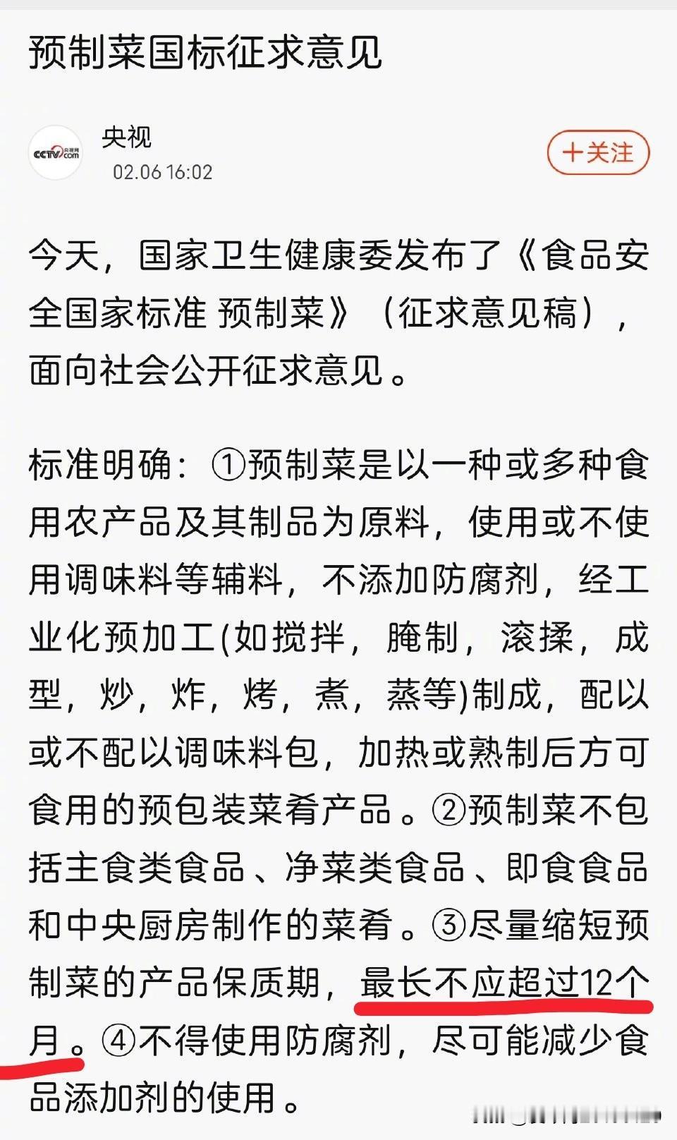 马上就要过年了,看到有的条友都开始准备年货了。以前从腊月二十三过小年开始就要杀鸡、腌肉、炸丸子、炸鱼、蒸馒头、蒸花糕等等。这些东西按现在的说法应该都属于预制菜的范畴了吧。这不,国家卫生健康委刚发布了《食品安全国家标准 预制菜》(征求意见稿),正在面向社会公开征求意见呢。 我认为传统年货里的“预制”,其灵魂在于“妈妈的味道”。每一种肉的腌制,每一味香料的使用,都是父母对家人的深刻了解。我们对预制菜的管理,不必盲目向西方的食品标准看齐。中华美食的魅力,在于“五味调和,鼎鼐生香”的哲学。管理的重点,不该是追求一个僵化的、抹杀个性的统一标准,而是只要守住食品安全的底线即可。