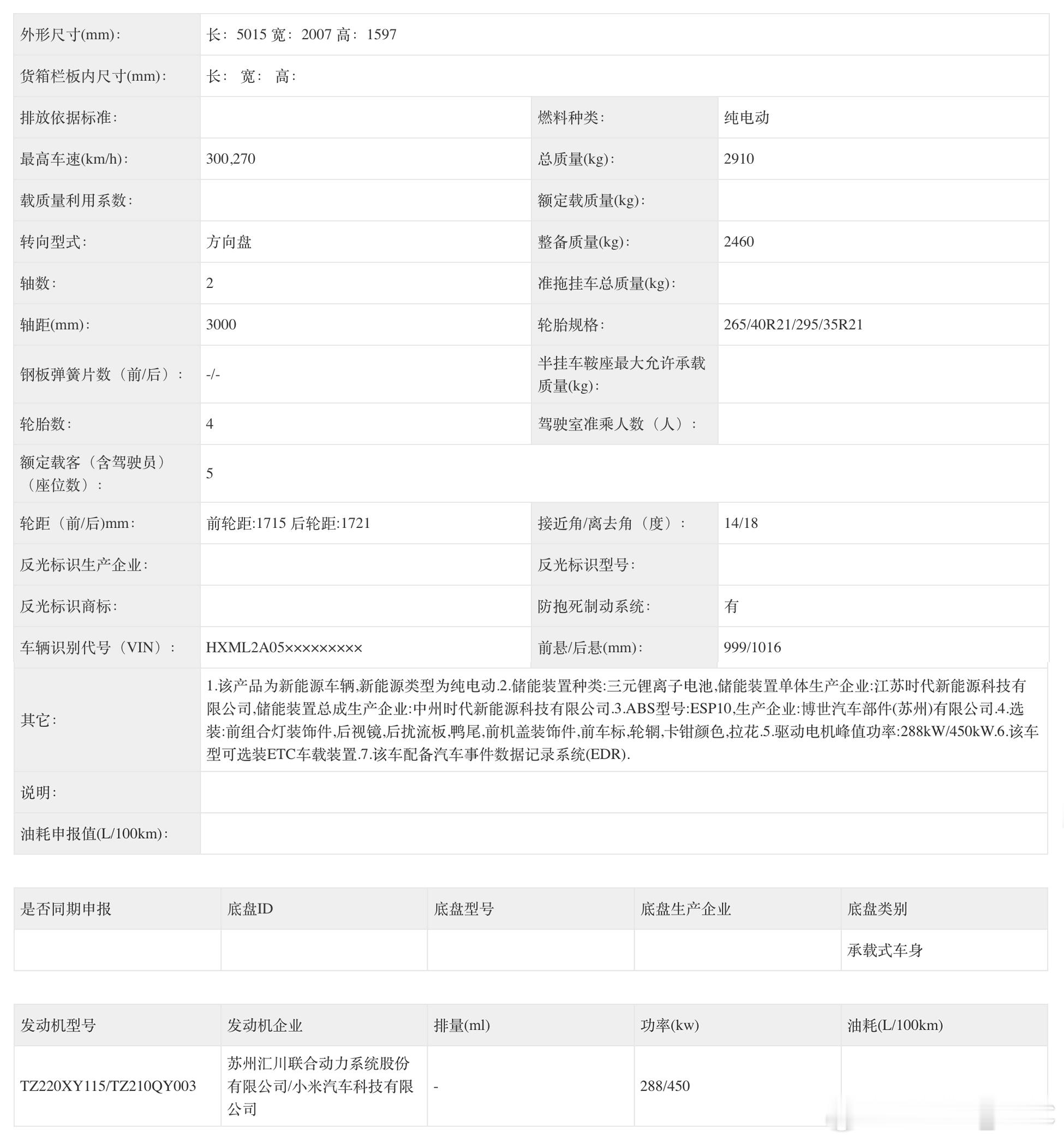 ✅ 整车尺寸:5015x2007x1597,比YU7大一丢丢,轴距一致都是3000mm;✅ 电机动力:前288/450,最大738kw。并没有上Ultra的V8s并列双电机。最高车速到了300km/h;✅ 造型上,用了21寸大轮毂,前265/后295mm胎宽,前机盖可以选装拉花、金色车标、彩色卡钳等等,情绪价值还是很足的。