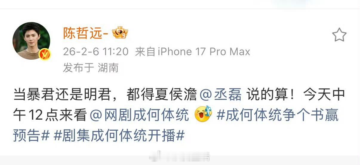 陈哲远复制丞磊后援会文案哈哈哈,陈哲远你是会帮忙宣传剧的,粉丝后援会发的文案准没