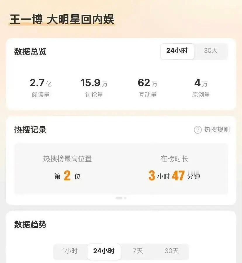 王一博参加wbzy半天,直接就登顶近期热门人物了,巨星归来,星光璀璨。