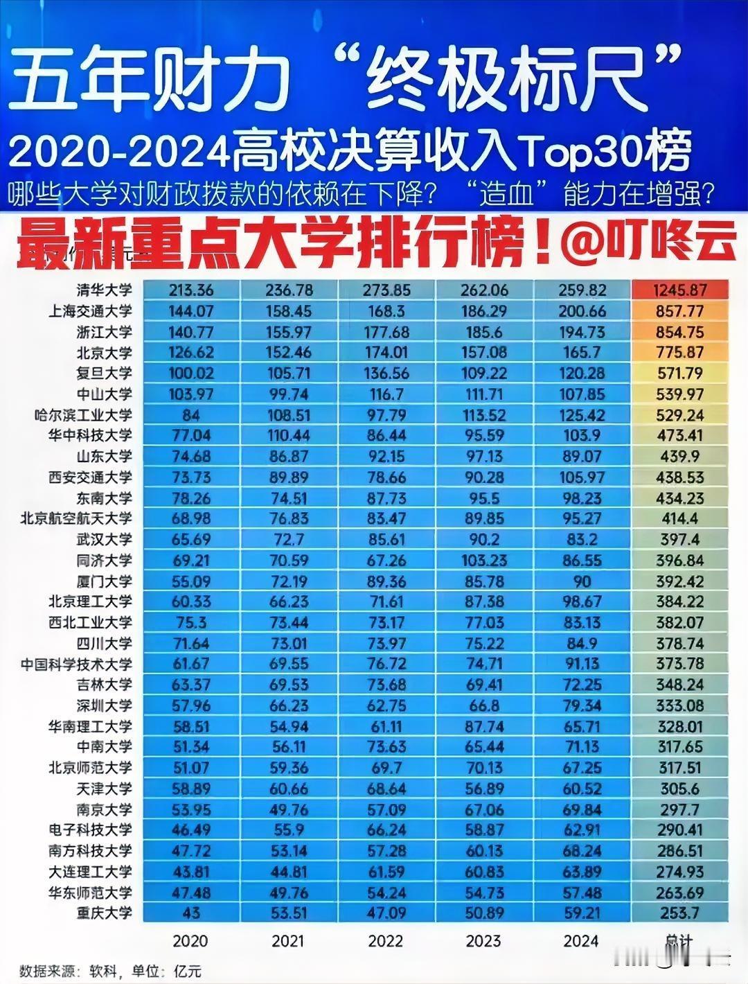 实力亮牌!全国重点大学排行榜前30名! 这里不比A类学科,这里不比SCI,那些都是纸上谈兵,没有任何意义,真金白银才是真正实力!评比标准更新了!速速收藏!依据五年决算,看看清华是重庆多少倍?再看看南京大学和北京大学。深圳大学竟然高于华南理工!这才是真正的硬实力!办学如果没有资金投入,那就是无源之水,纸上谈兵!世事洞明皆学问,人情练达即文章!纸上得来终觉浅,绝知此事要躬行!速速围观揭秘详细内容![点亮平安灯][点亮平安灯][福][福] 欢迎关注@叮咚云 将优先为粉丝职业规划指导,为你定制最适合的就业择业方案!欢迎留言交流讨论。[来看我][来看我] 免责声明:图片来自网络,仅供参考! 国企校招应届生 中国大学实力榜