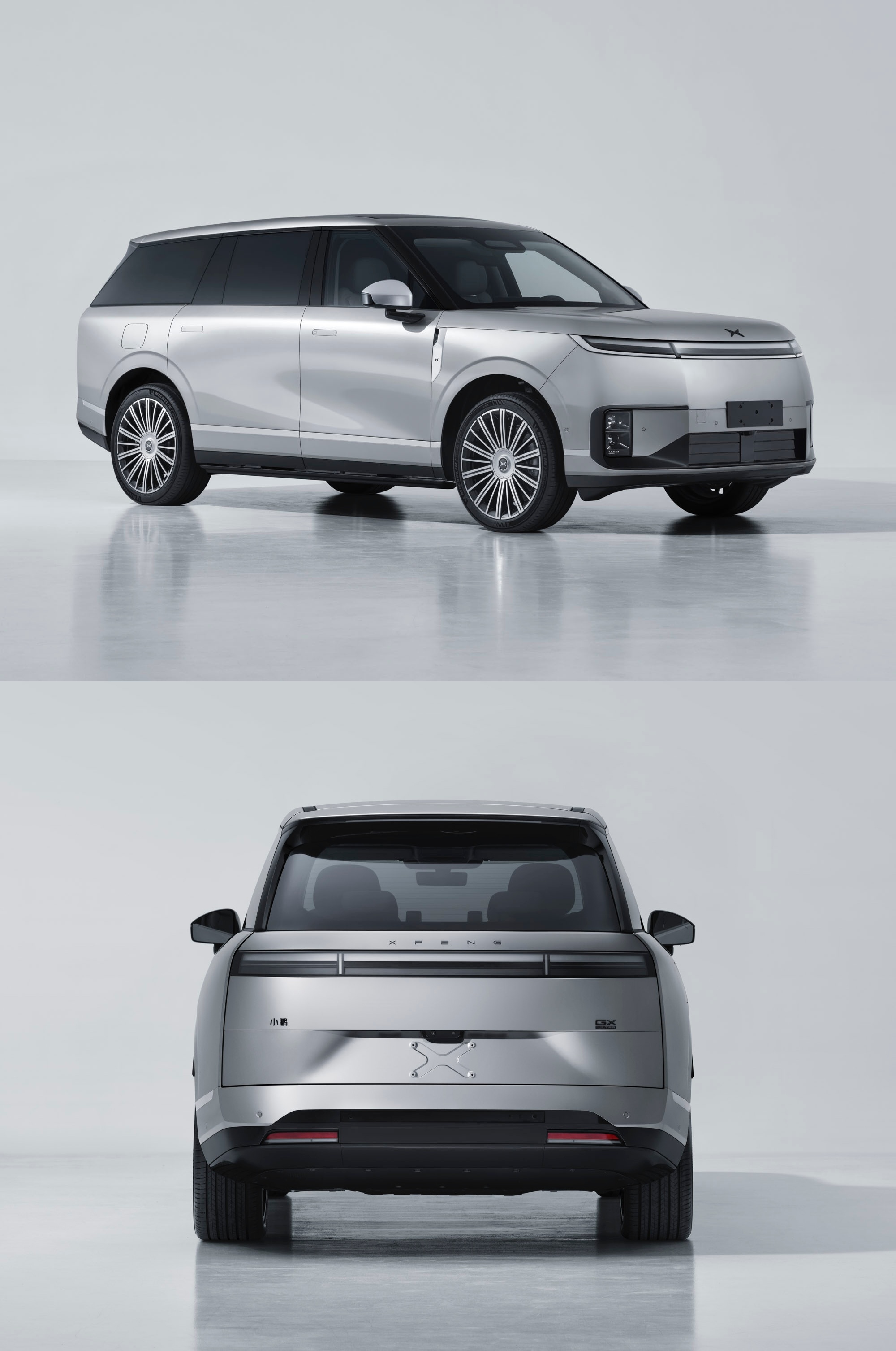 图1:小鹏GX小鹏GX定位AI新豪华大六座旗舰SUV,推出纯电与增程双版本,预计4-5月上市。设计风格简约大气,采用分体式灯组、悬浮车顶及天地门设计,车身长宽高尺寸为5265/1999/1800mm,轴距为3115mm。增程版搭载1.5T发动机,前后双电机,纯电续航320km;纯电版同样配备双电机系统,最高车速均达200km/h。