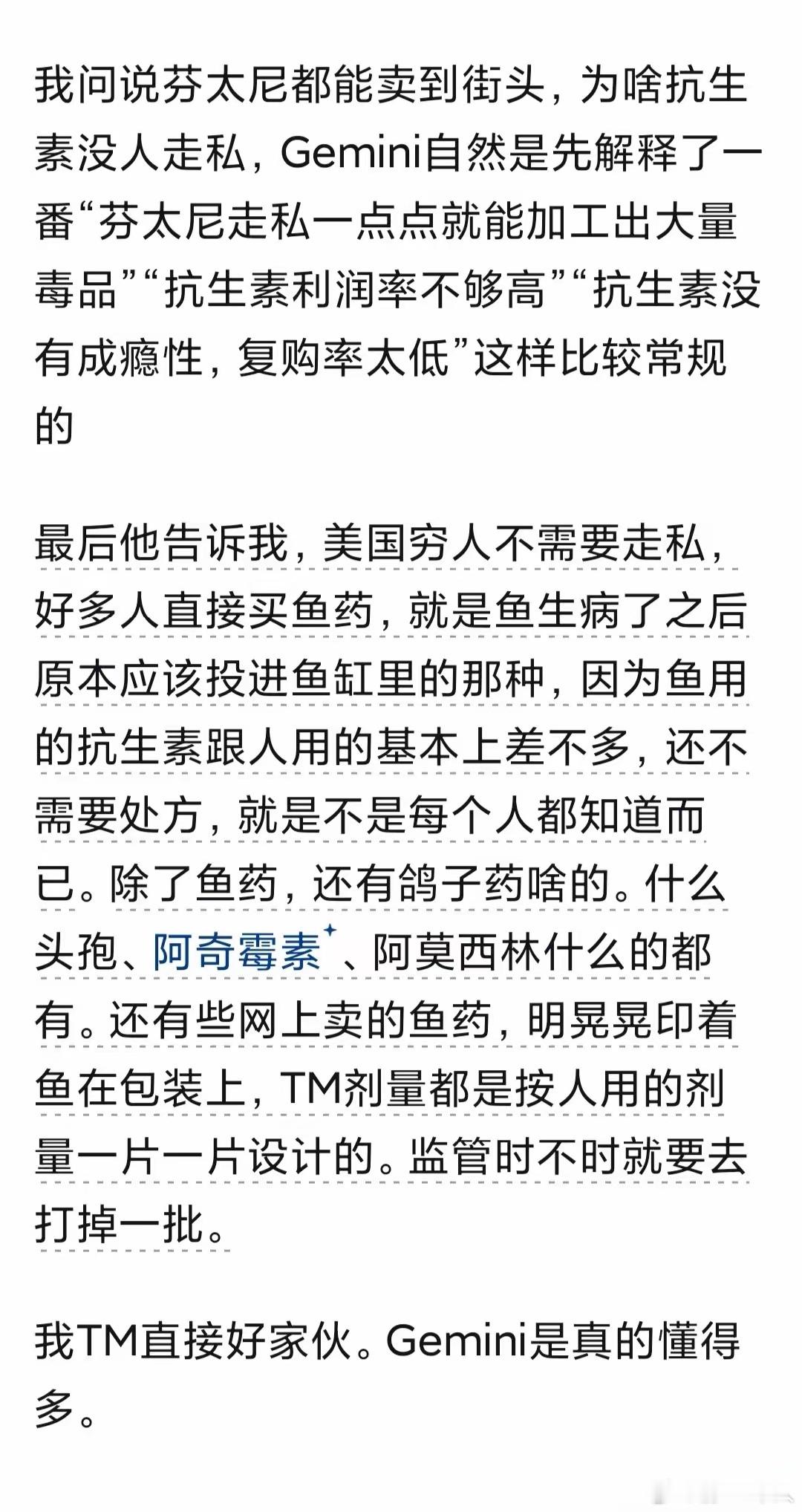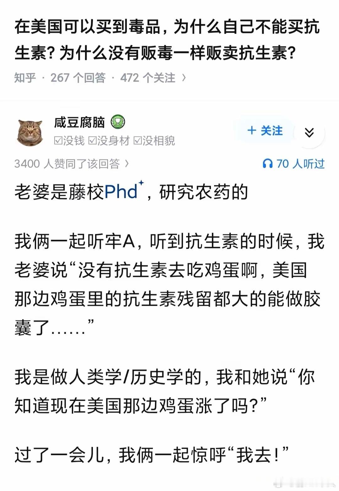 美国抗生素比毒品管理严格,奇葩:牢A讲过,如果需要抗生素,但是买不到怎么办?喝牛奶。牢A是提美国黑诊所和医疗乱象时候说了一嘴,美国抗生素很难搞,有些人等不住了哪怕他有医保有钱也会找黑诊所,黑诊所有时候也搞不到抗生素,但是人家医生确实厉害,就会告诉病人喝XXXX牌子的牛奶,是个小牌子,因为那个牧场养殖水平不高只好猛用抗生素。
