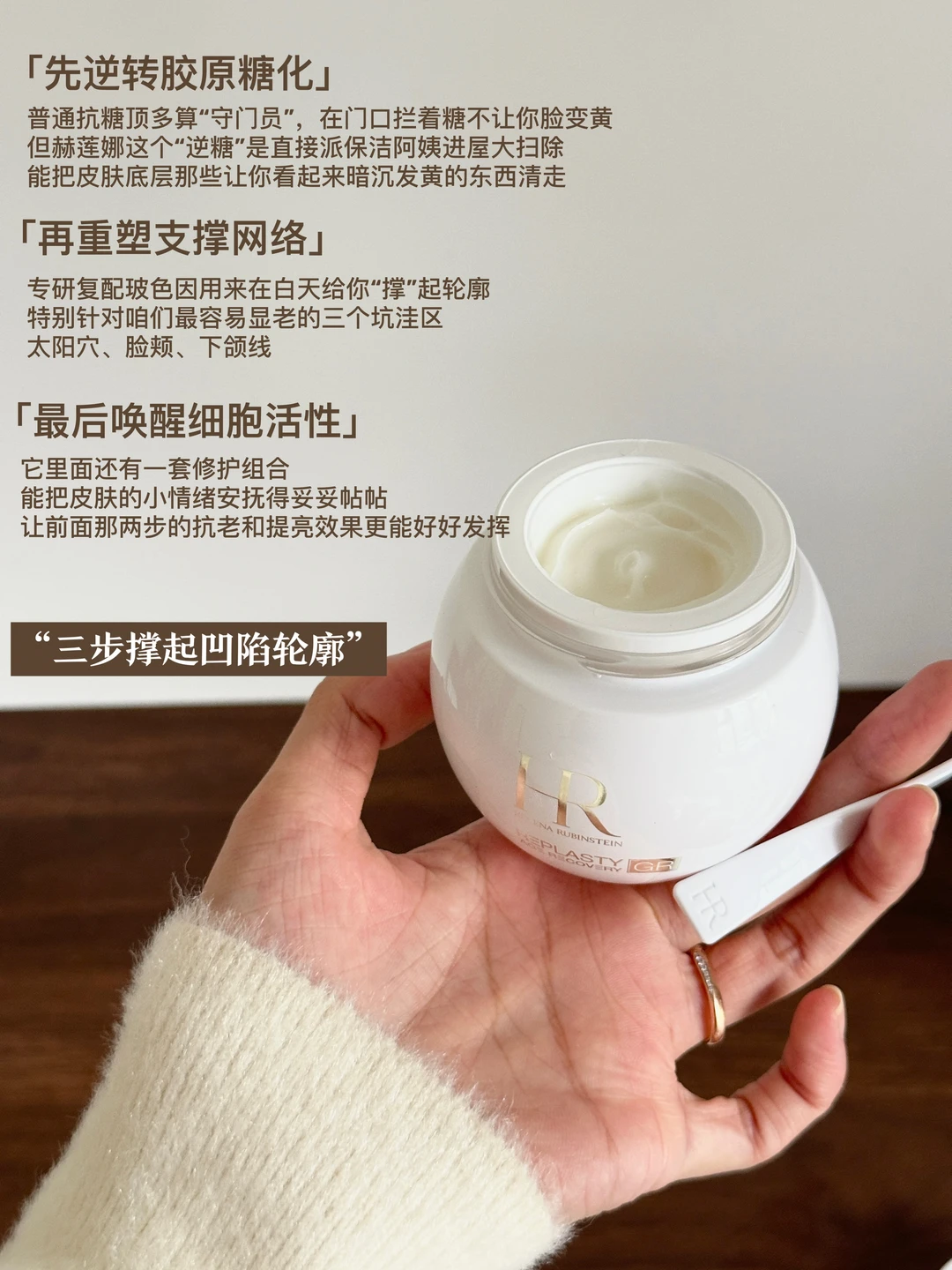里面的“逆糖”成分-高活逆糖精粹,不止能抗糖化,还能主动逆转糖损,像小扫帚一样,能把皮肤底层那些让你看起来暗沉发黄的东西清走。白绷带所用的 Glyco-Reverse高活逆糖精萃(瓶身上的“GR”正源于此)普通抗糖顶多算“守门员”,在门口拦着糖不让你脸变黄,但赫莲娜这个“逆糖”是直接派保洁阿姨进屋大扫除!