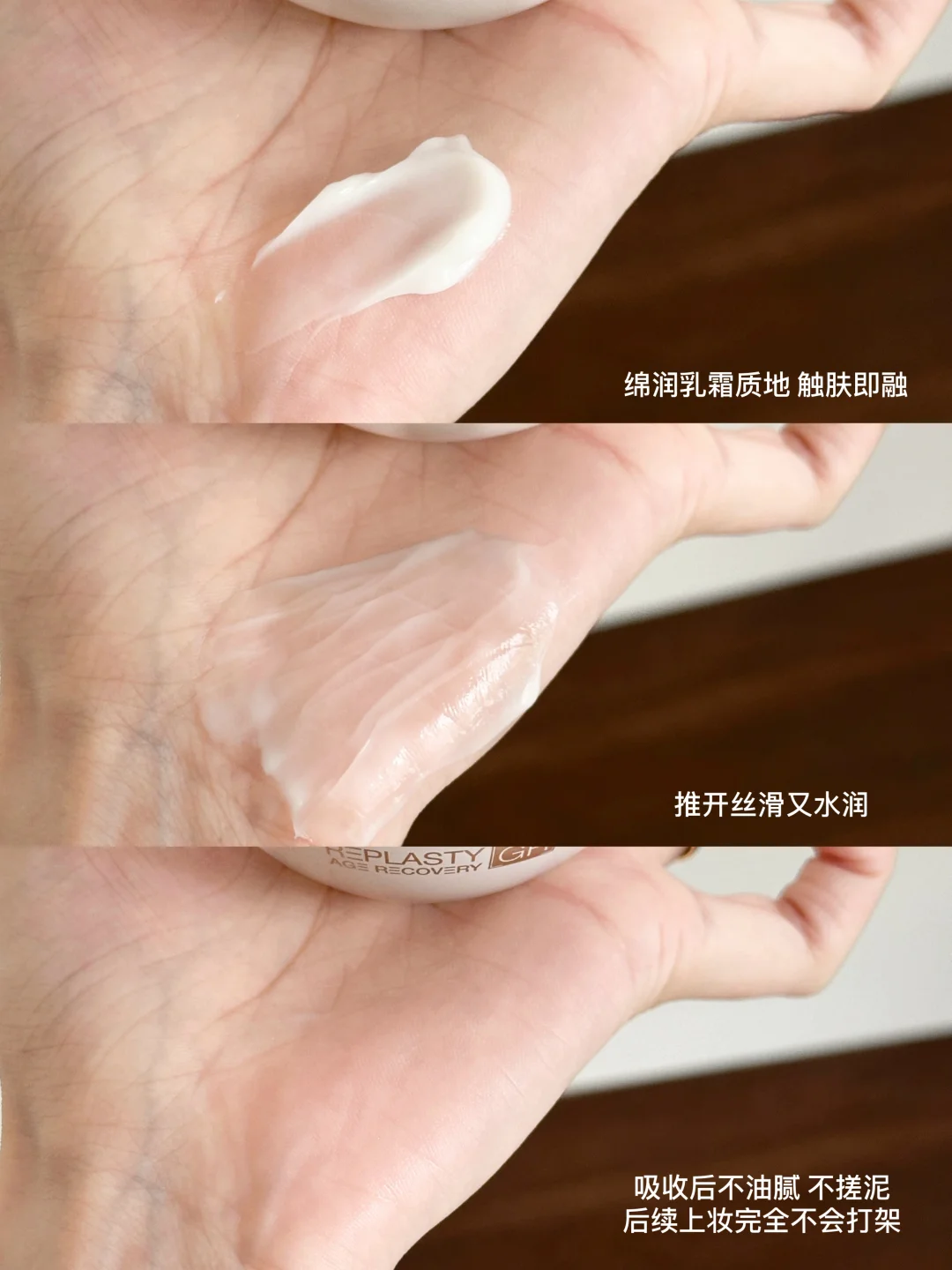 最后就是打底子 ,白天外界折腾多,它里面还有一套修护组合,能把皮肤的小情绪安抚得妥妥帖帖,让前面那两步的抗老和提亮效果更能好好发挥
