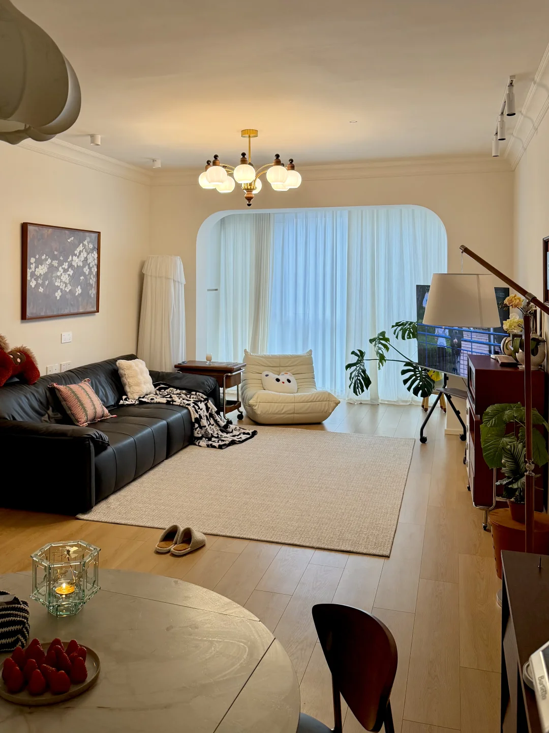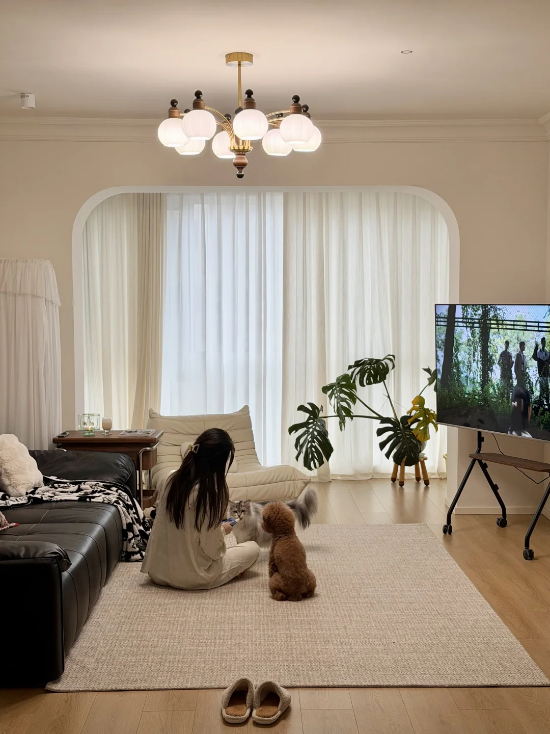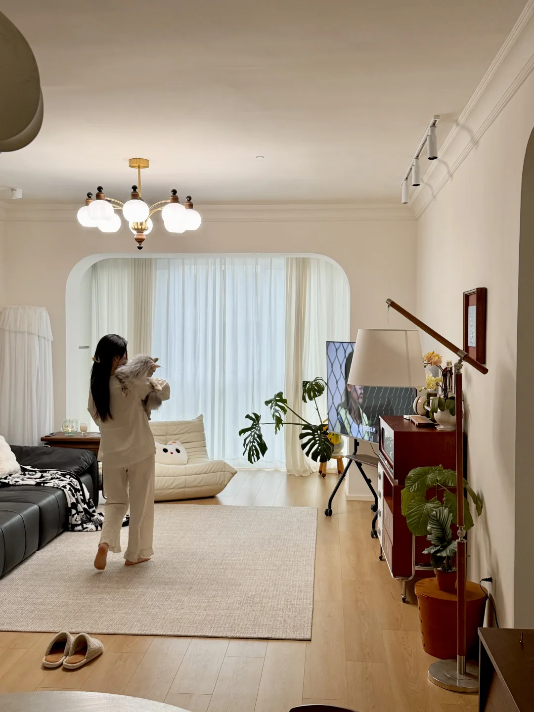 我家这款是智能款+80W的全光谱护眼光源,亮度够足却不刺眼,光线柔和又均匀,书本上的字迹清晰得恰到好处,现在窝在沙发上长时间看电视,眼睛也不会觉得累,可以随意切换光源,晚上逗猫切换暖光模式,柔柔的光线漫满整个空间,直接把幸福感拉满,这才是家该有的样子呀~