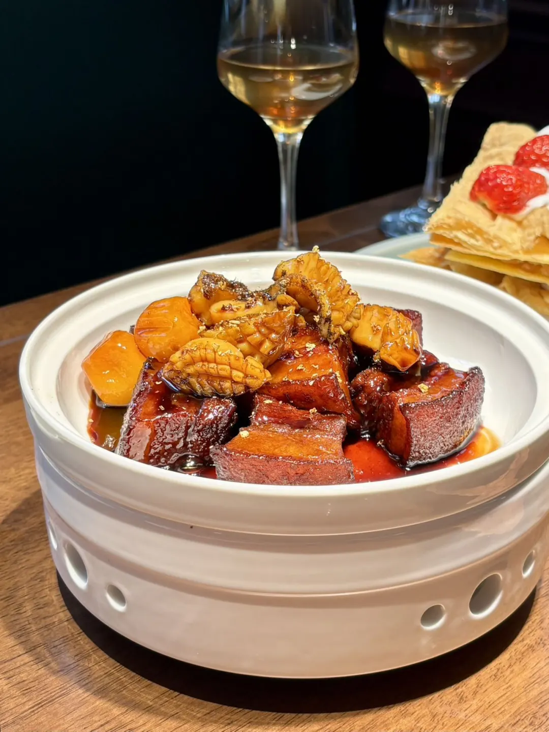西白菜园一直可以说是“老白下的颐和路”,五粮山房就位于一栋修缮完好的民国建筑内,从外立面到内部空间,都透着一股静雅的气质。 鲍鱼红烧肉 浓油赤酱永远是江浙孩子的心头好。五花肉肥瘦两相宜,入口即化,香而不腻,鲍鱼Q弹入味,配米饭🍚那叫一个香! 手打红烧狮子头 取材黑猪肉,分量扎实,肉质细腻,肉香醇正,回味无穷。 水果拿破仑 一层酥一层水果,蓝莓🫐草莓🍓火龙果……在奶油的加持下香甜酥脆,果香、奶香交织,层次丰富~ 另外,他家的松鼠鳜鱼、香芋奶昔也是可圈可点,百吃不腻。 🏠五粮记(科巷西白菜园店)