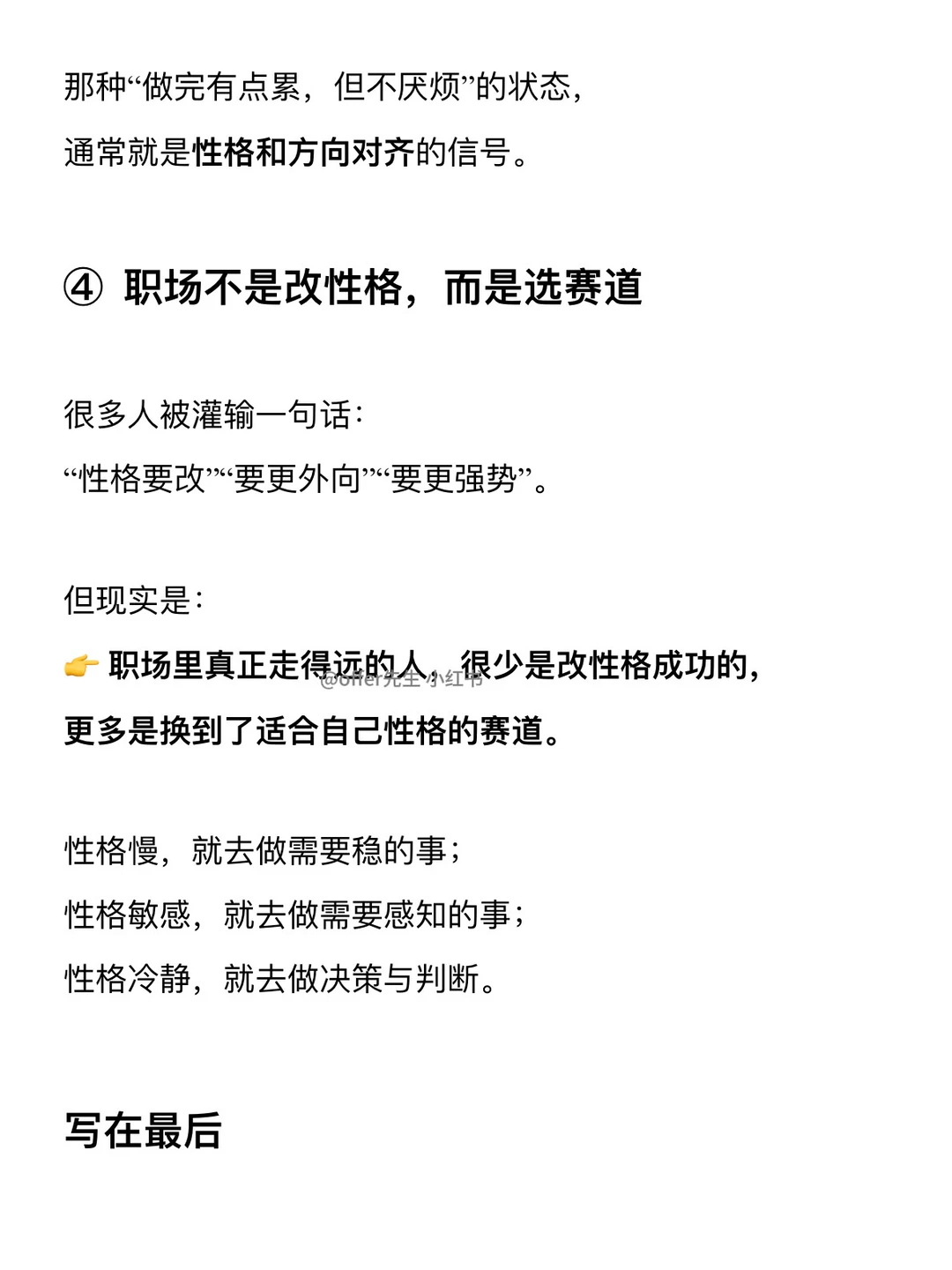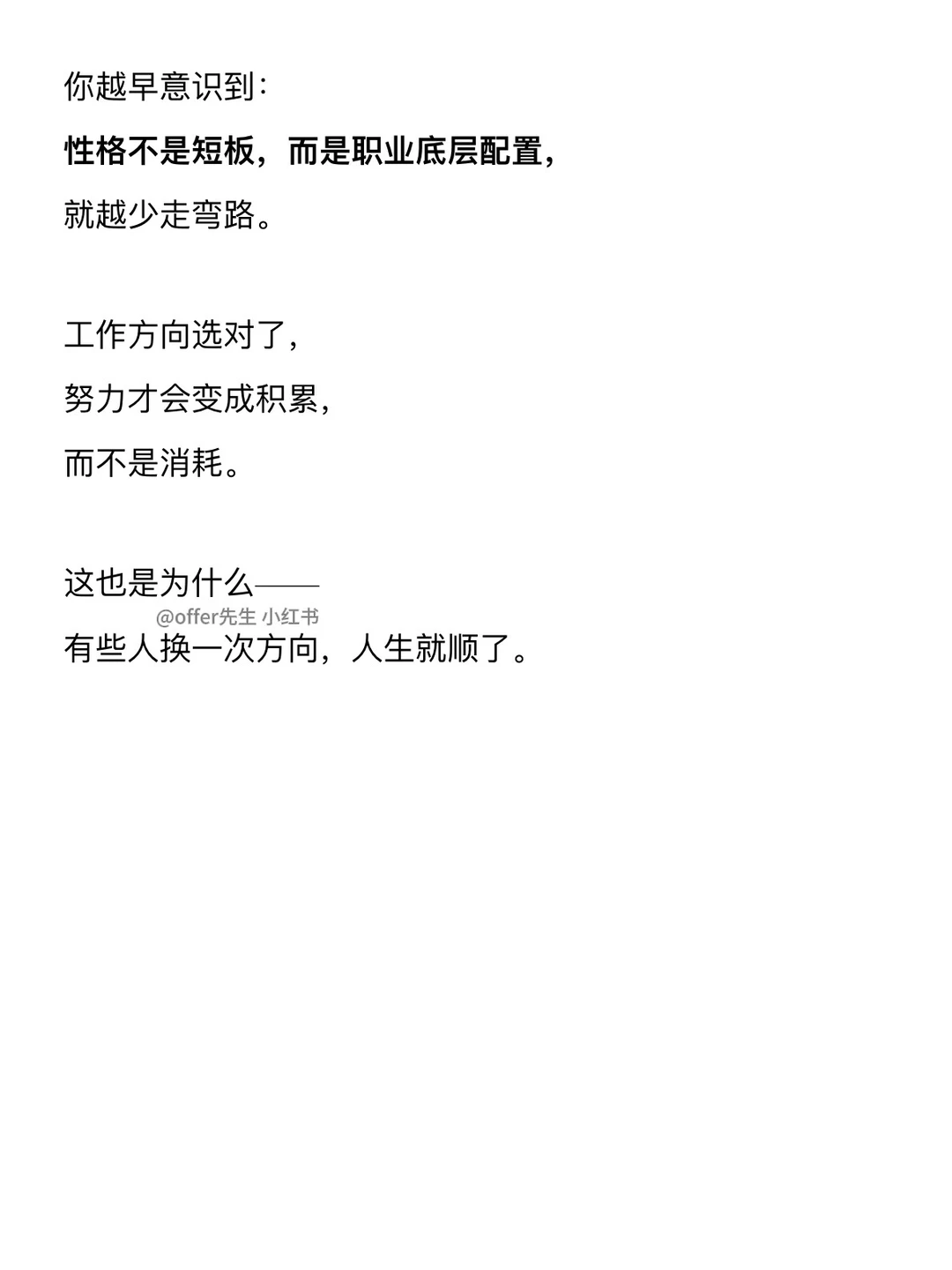 很多人把职业选错,不是能力不够, 而是从一开始,就在用反性格的方式硬撑。 你会发现一个很残酷的事实: 👉 工作里最消耗你的,往往不是难度,而是违背本性的日常。 … 一个认真分享“找工作”干货的账号,真诚、有料、不说空话 ·