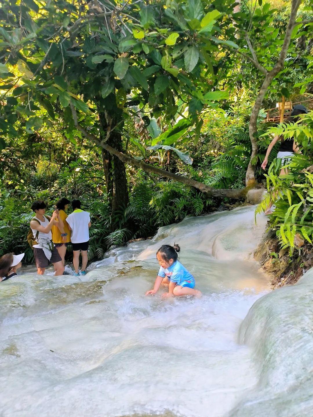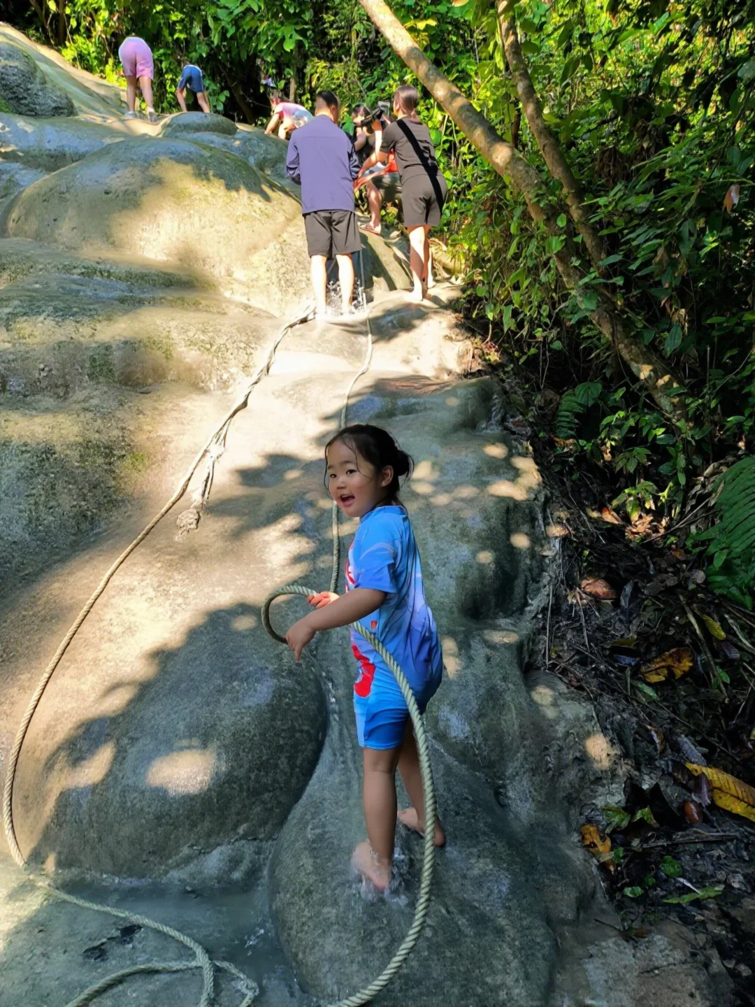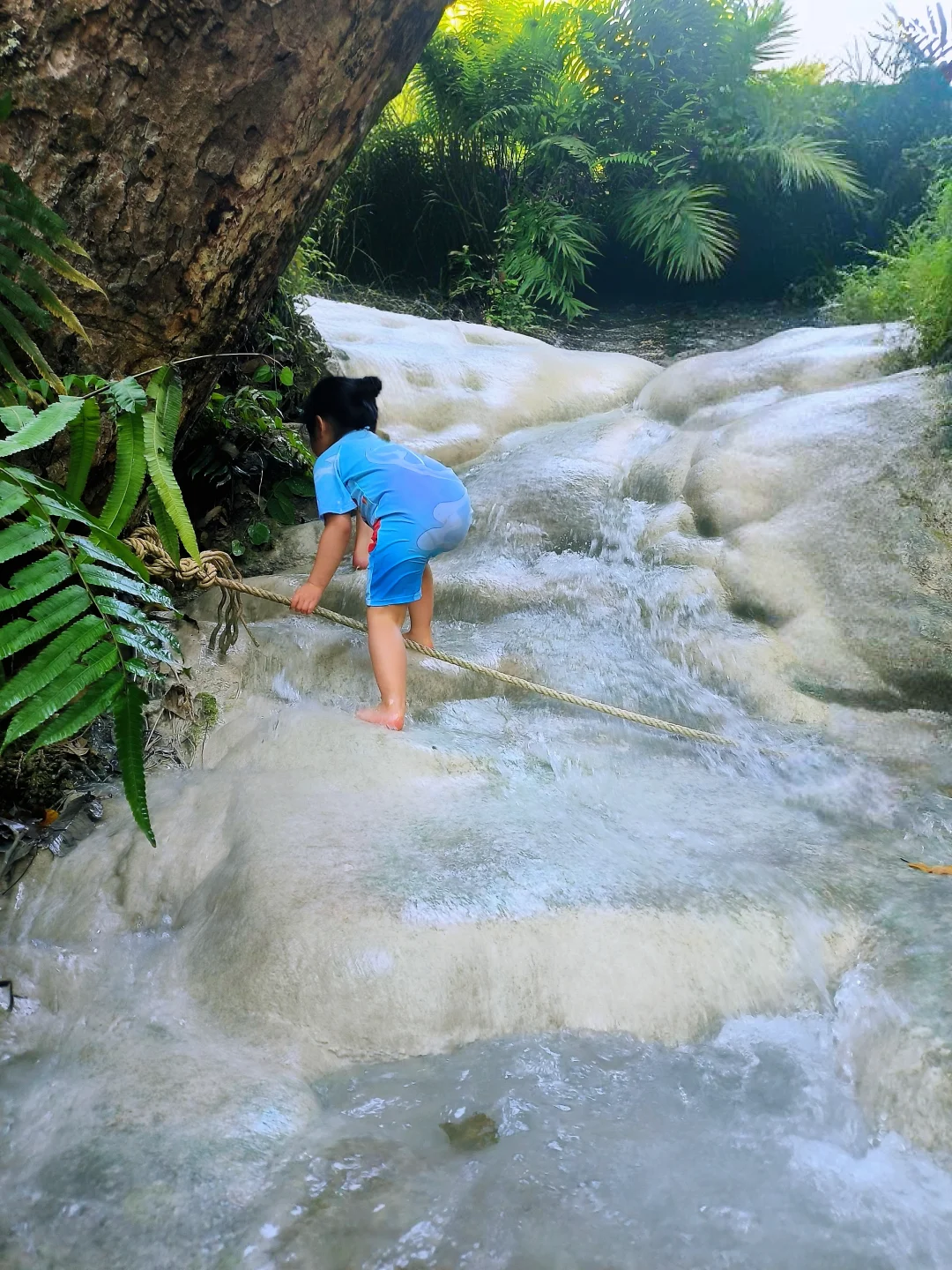 ✅ 免费好玩:少有的可攀爬瀑布,娃的天然体能训练场!