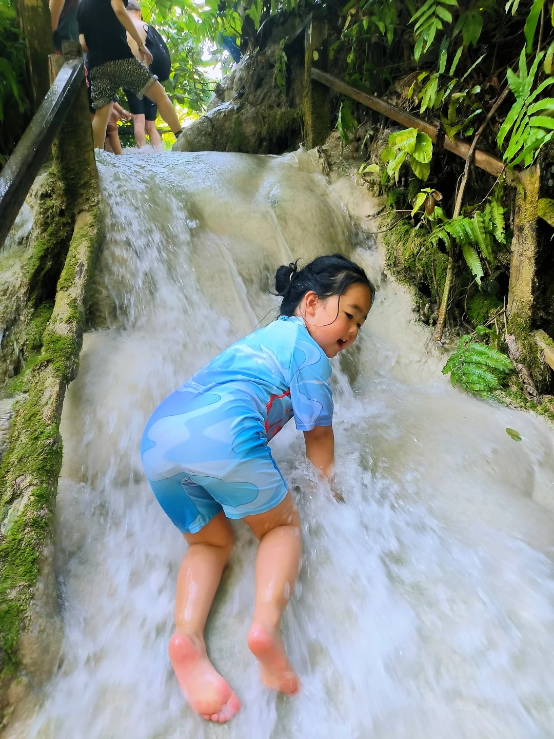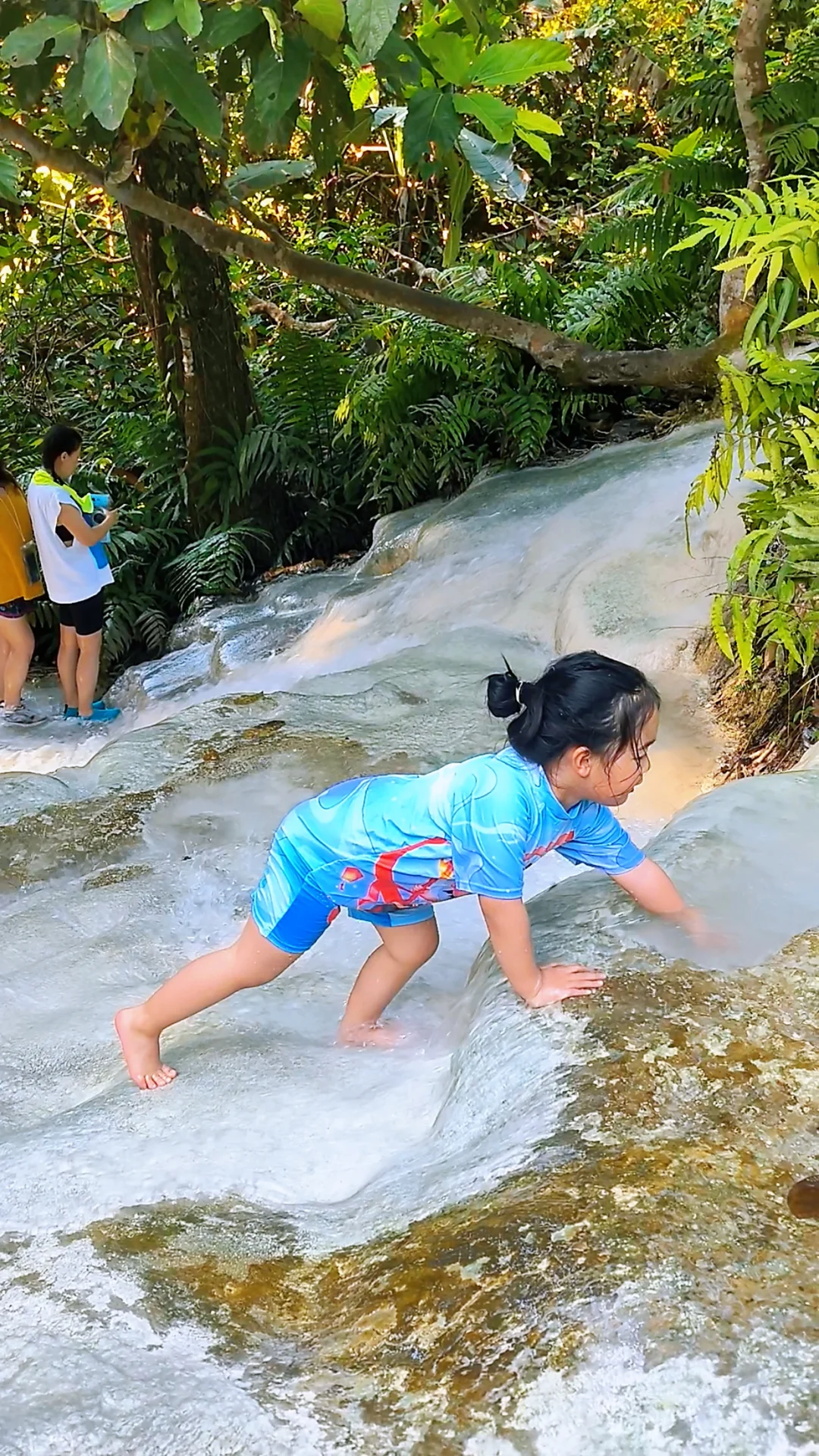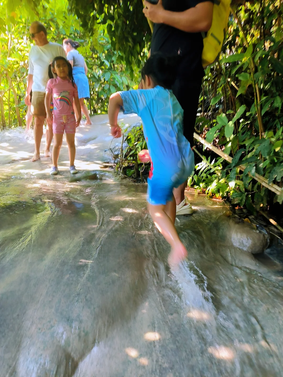 ✅ 免费好玩:少有的可攀爬瀑布,娃的天然体能训练场!