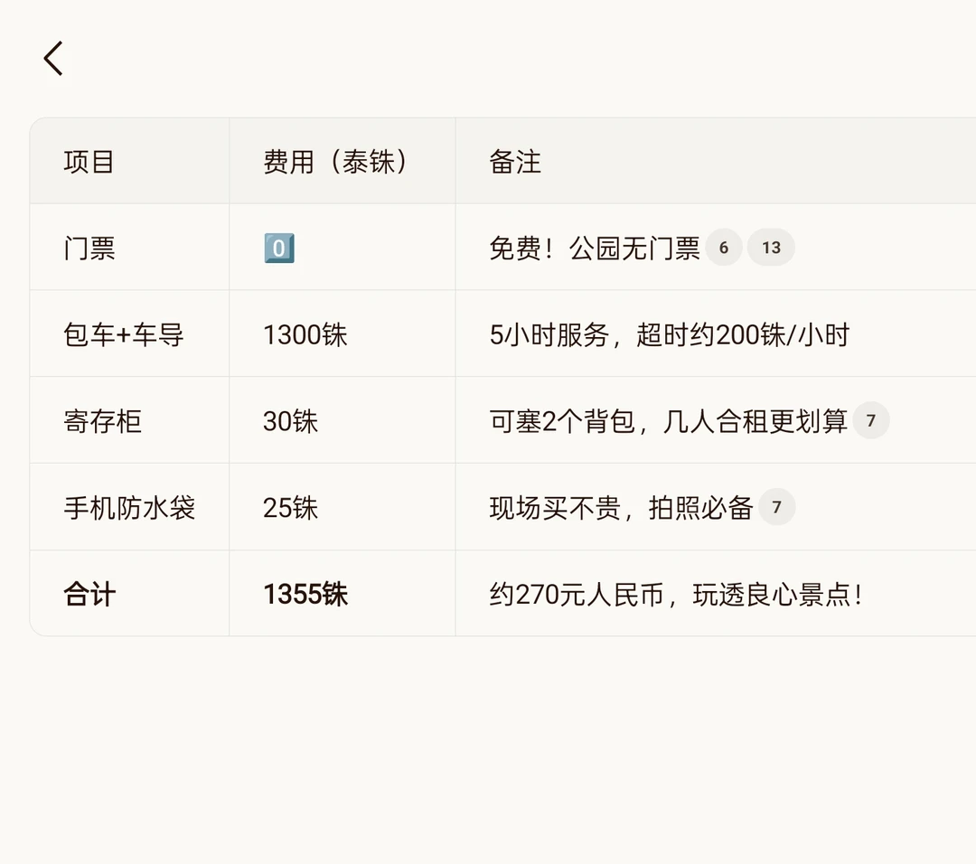 推荐配置:中文车导(5小时1300泰铢,酒店接送+全程陪同)。