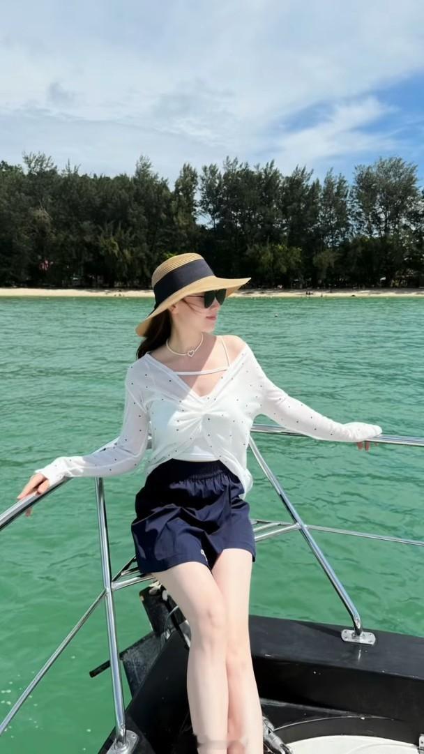 藝人朱晨麗近來養尊處優,已久未在幕前與觀眾見面,但仍不時更新社交網更新近況。她最近去了馬來西亞沙巴旅遊,她在社交網分享在當地吃喝玩樂的短片,片中見身為海鮮控的她去了海上農莊大快朵頤,先後品嘗了蒸魚及龍蝦等佳餚,又狂擦榴槤,她發文:「乘風破浪,終於實現了理想的海鮮自由,遠離塵囂,來海上的農莊品嘗鮮美的海鮮。」此行她放慢腳步,除了寫意逗貓,飯後又出海派福利,雖然未有以泳裝上陣,但就跌膊晒香肩,下身配襯短褲晒白滑美腿,同樣誘人!