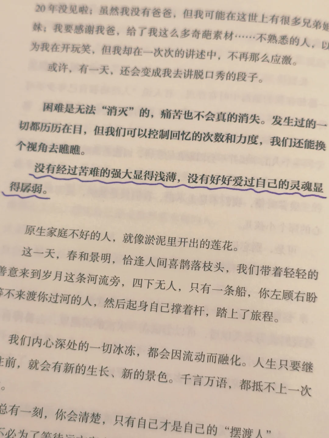 作为抑郁症患者,我曾无数次痛恨自己的"脆弱",而晓雨的文字让我深切感受到,"盛开是生命的热爱,凋零是生命的接纳。"就像我在治疗中学会的那样,允许自己暂时停下脚步,反而能积蓄重新出发的力量。 这本书教会我的,不是如何消除内耗,而是如何与内耗共处。