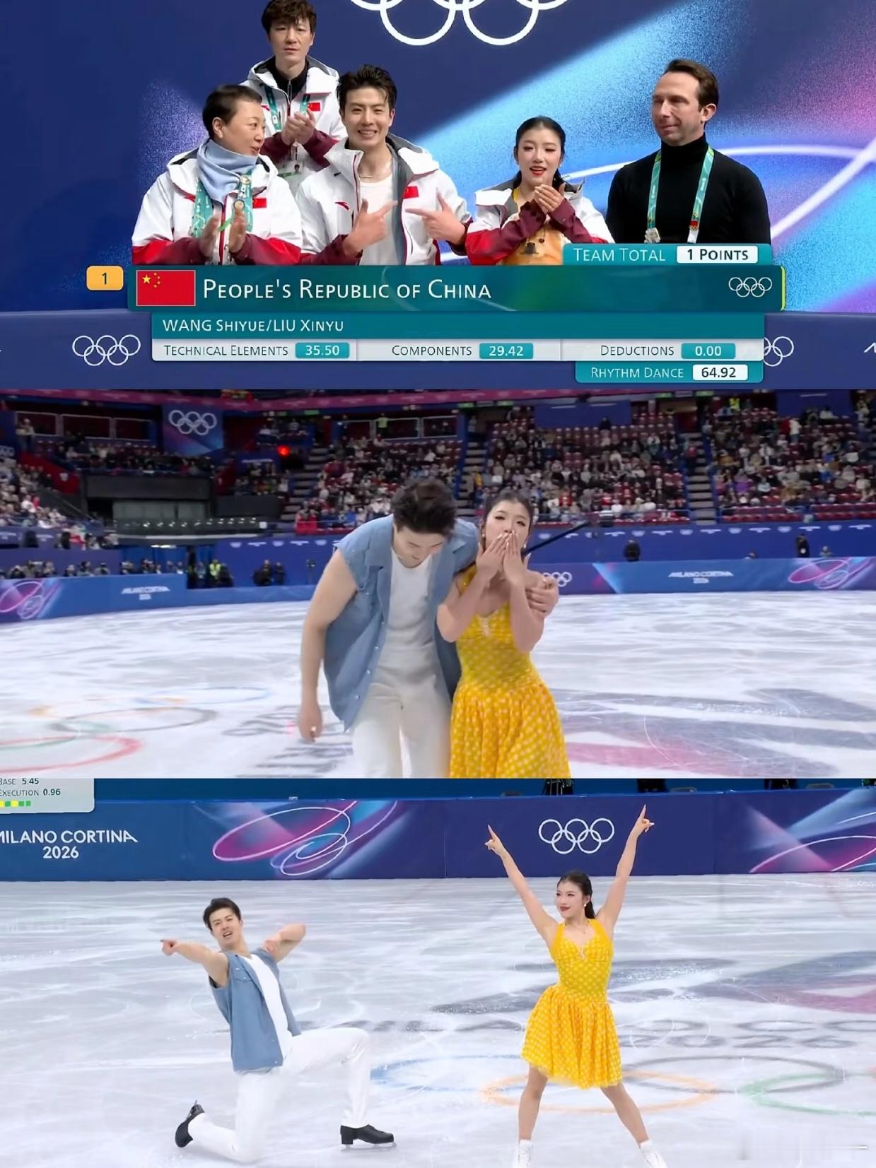 米兰冬奥会花样滑冰团体赛冰舞韵律舞,中国组合王诗玥柳鑫宇第一顺位登场,获得64.92分。